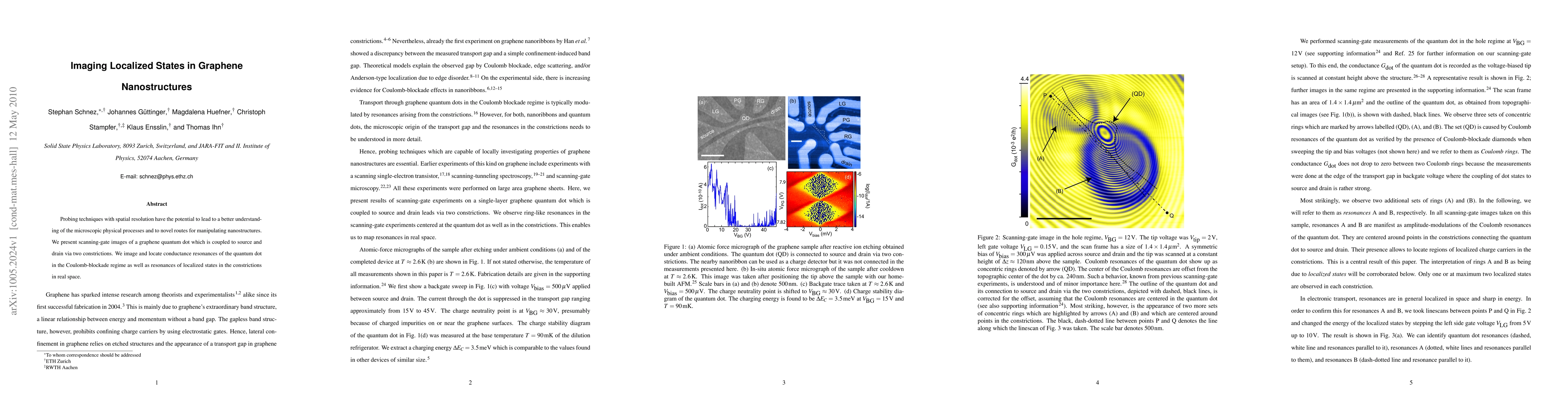 Probing techniques with spatial resolution have the potential to lead to a better understanding of the microscopic physical processes and to novel routes for manipulating nanostructures. We present scanning-gate images of a graphene quantum dot which is coupled to source and drain via two constrictions. We image and locate conductance resonances of the quantum dot in the Coulomb-blockade regime as well as resonances of localized states in the constrictions in real space.