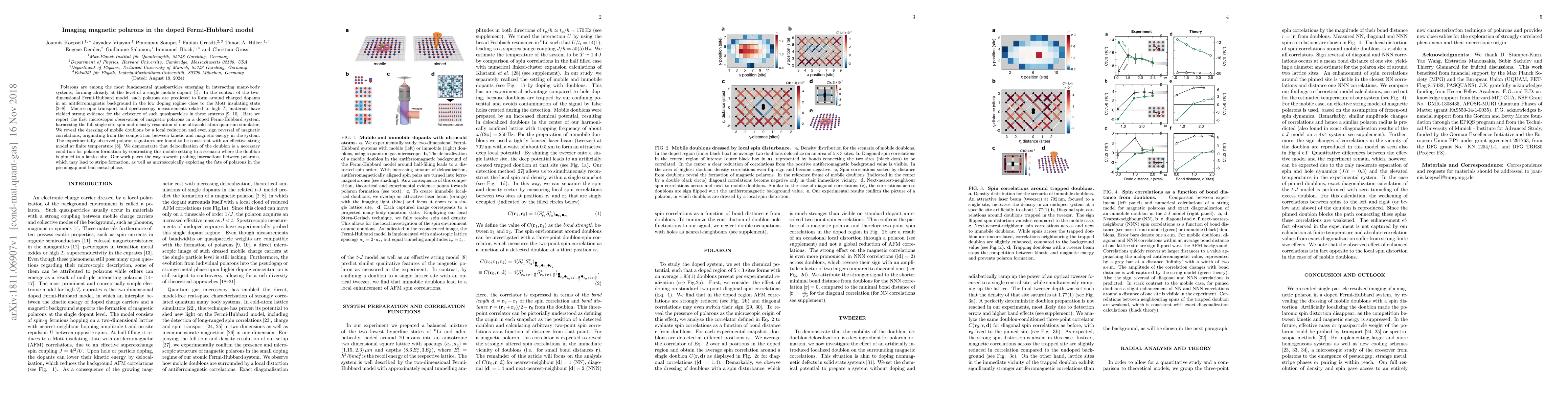 This research reports the first microscopic observation of magnetic polarons in a doped Fermi-Hubbard model using an ultracold-atom quantum simulator, revealing their formation due to kinetic-magnetic energy competition. It demonstrates that doublon delocalization is crucial for polaron formation and aligns with an effective string model at finite temperatures.