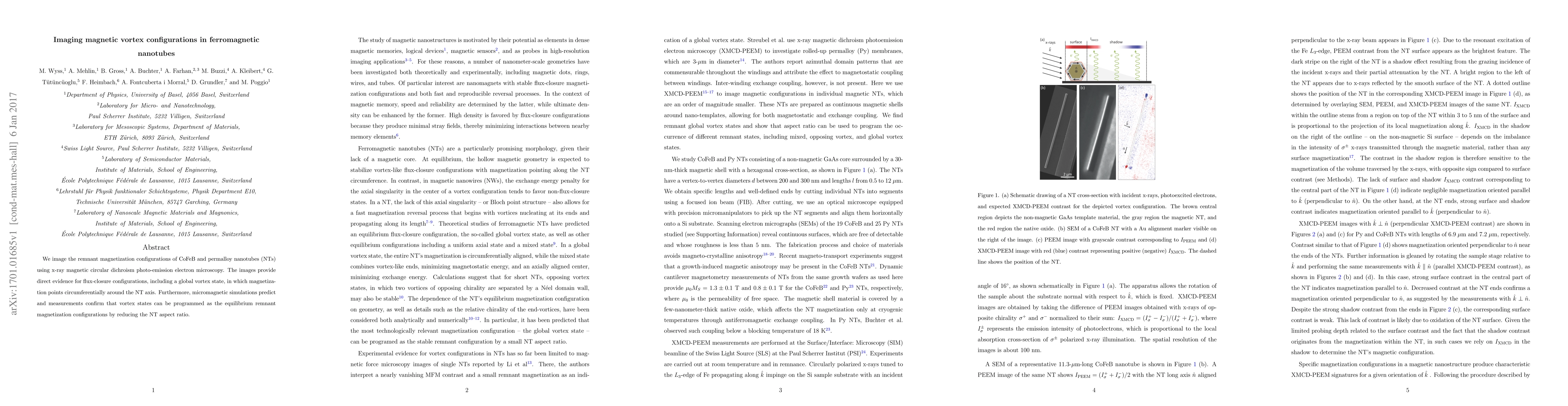 This study uses x-ray magnetic circular dichroism photo-emission electron microscopy to reveal the magnetization configurations in CoFeB and permalloy nanotubes, showing flux-closure configurations including a global vortex state. Simulations and measurements confirm that vortex states can be programmed as equilibrium configurations by decreasing the nanotube aspect ratio.