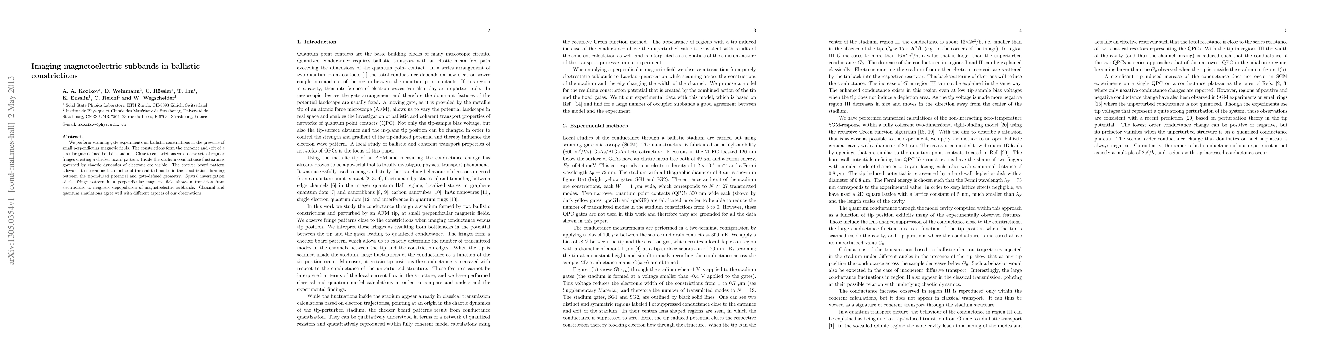 Researchers observed a checkerboard pattern in conductance fluctuations near ballistic constrictions under magnetic fields, revealing magnetoelectric subbands. Classical and quantum simulations supported their findings, shedding light on the dynamics of electrons in these structures.