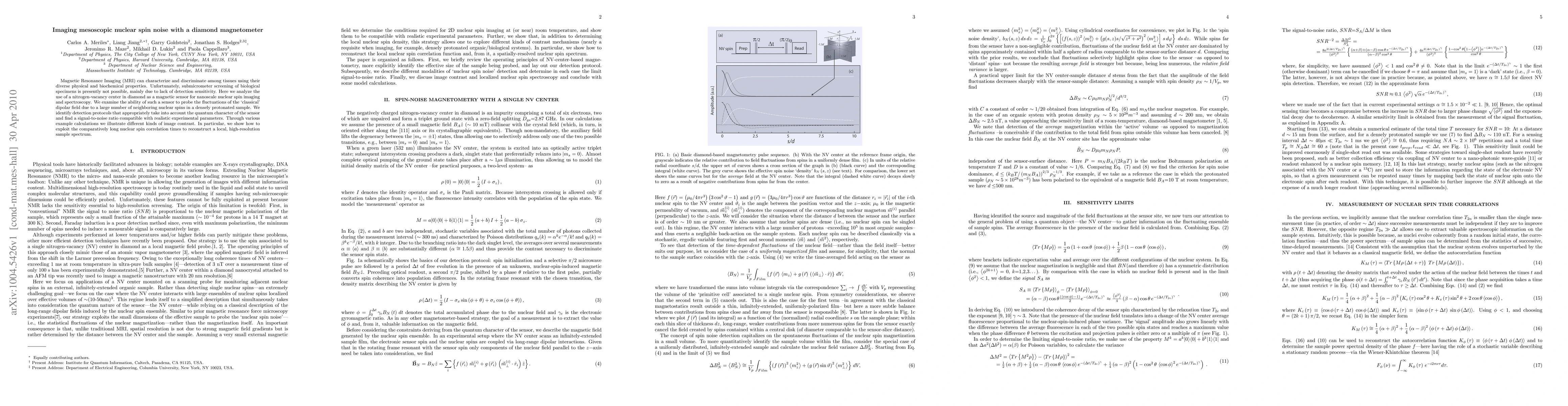 Researchers develop a diamond magnetometer to detect nanoscale nuclear spin noise for high-resolution imaging and spectroscopy of biological samples. The sensor can probe fluctuations in classical dipolar fields, allowing for detailed sample spectra and image contrast.