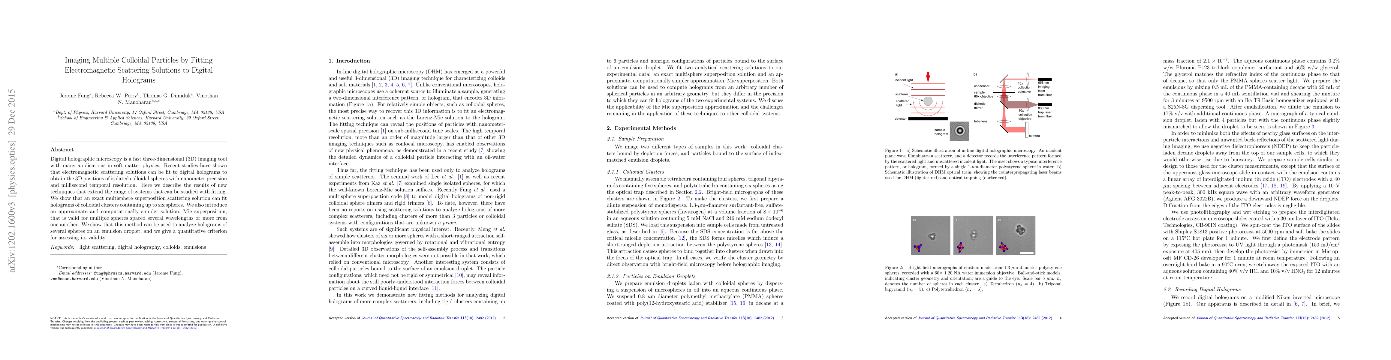 This paper presents new techniques for imaging multiple colloidal particles using digital holographic microscopy, extending the method to clusters of up to six spheres. It introduces both exact and approximate scattering solutions for fitting digital holograms, enabling precise 3D position determination and applications in soft matter physics.
