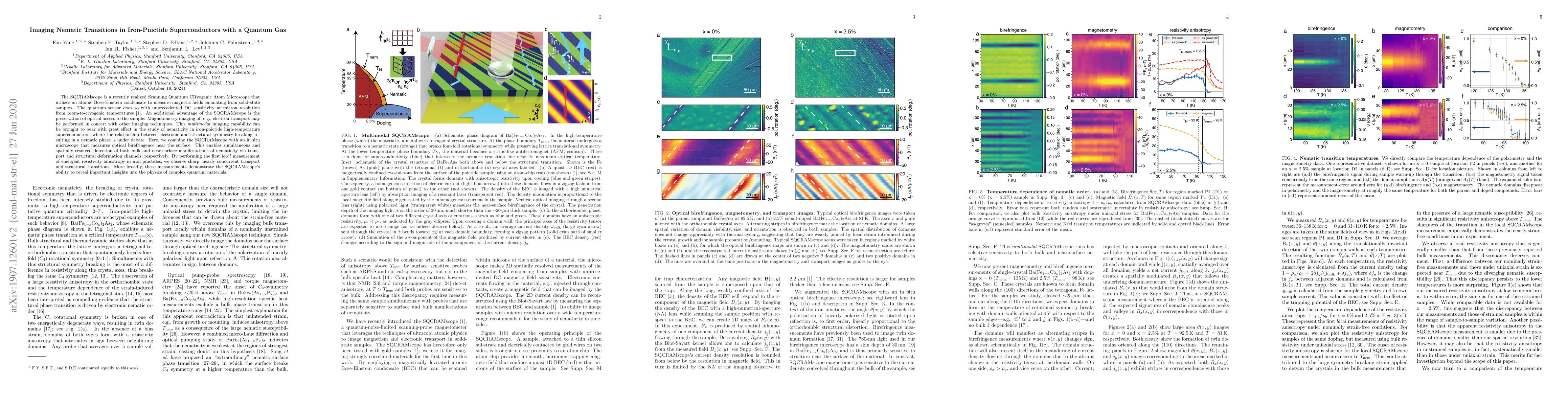 This paper utilizes a novel Scanning Quantum CRyogenic Atom Microscope (SQCRAMscope) to image nematic transitions in iron-pnictide superconductors, revealing sharp, nearly concurrent transport and structural transitions. The study combines SQCRAMscope with optical birefringence microscopy to provide spatially resolved insights into the nematic phase.