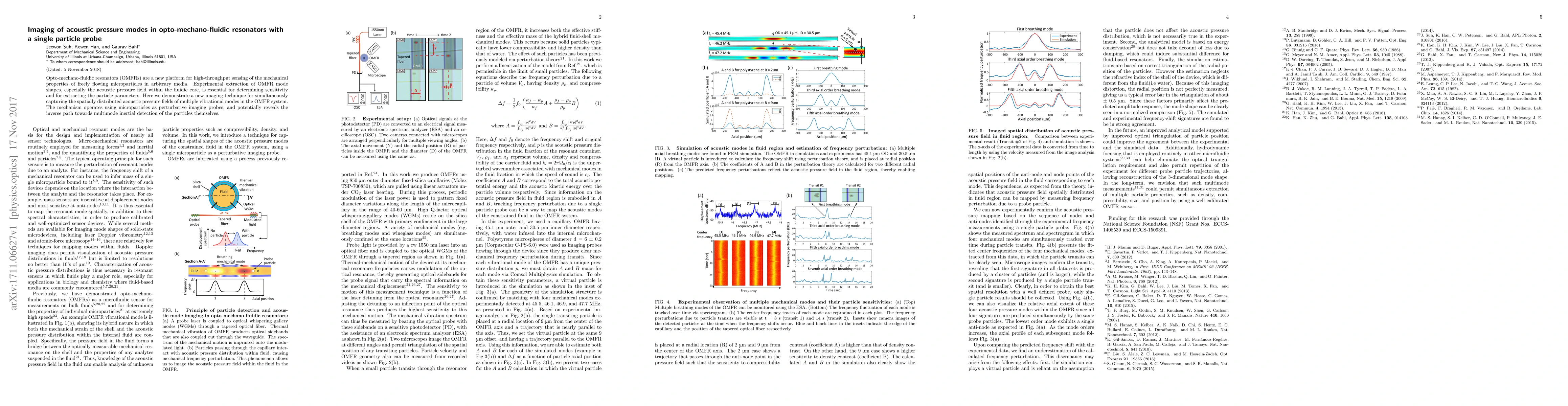 Opto-mechano-fluidic resonators (OMFRs) are a new platform for high-throughput sensing of the mechanical properties of freely flowing microparticles in arbitrary media. Experimental extraction of OMFR mode shapes, especially the acoustic pressure field within the fluidic core, is essential for determining sensitivity and for extracting the particle parameters. Here we demonstrate a new imaging technique for simultaneously capturing the spatially distributed acoustic pressure fields of multiple vibrational modes in the OMFR system. The mechanism operates using microparticles as perturbative imaging probes, and potentially reveals the inverse path towards multimode inertial detection of the particles themselves.