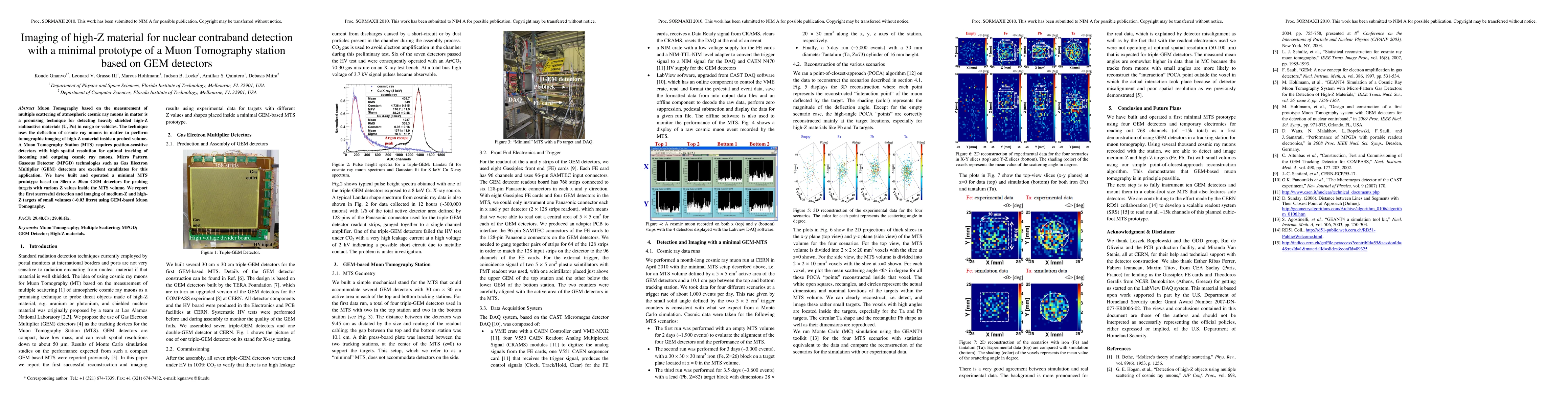 This paper presents a prototype Muon Tomography station utilizing Gas Electron Multiplier (GEM) detectors for detecting high-Z materials like uranium and plutonium in cargo. The study successfully demonstrates the imaging of medium-Z and high-Z materials using the minimal prototype, showcasing the potential of this technique for nuclear contraband detection.