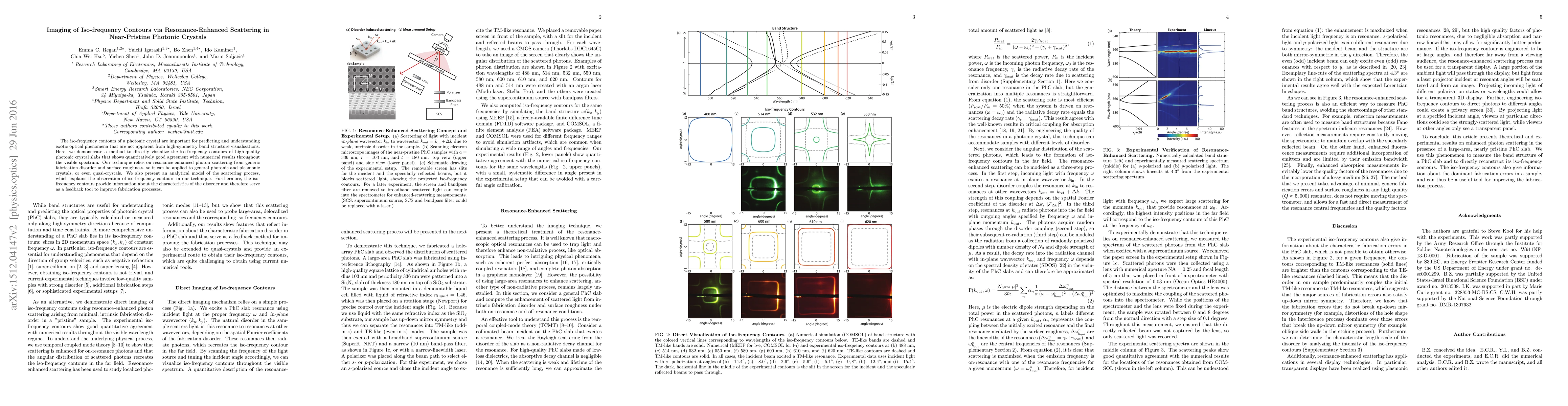 This paper presents a method to visualize iso-frequency contours in photonic crystals using resonance-enhanced scattering, showing good agreement with numerical results. The technique leverages scattering from fabrication disorder, providing insights into optical phenomena and serving as a feedback tool for fabrication improvements.