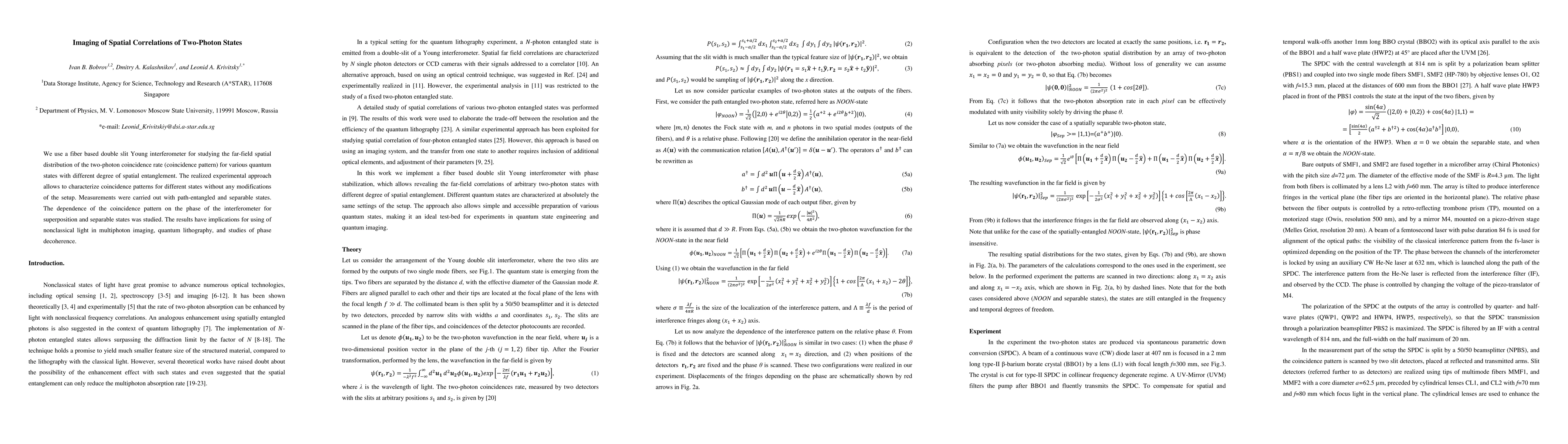 This paper investigates the spatial correlations of two-photon states using a fiber-based double-slit interferometer, revealing the far-field spatial distribution of the two-photon coincidence rate for entangled and separable states. The findings provide implications for applications in multiphoton imaging, quantum lithography, and phase decoherence studies.