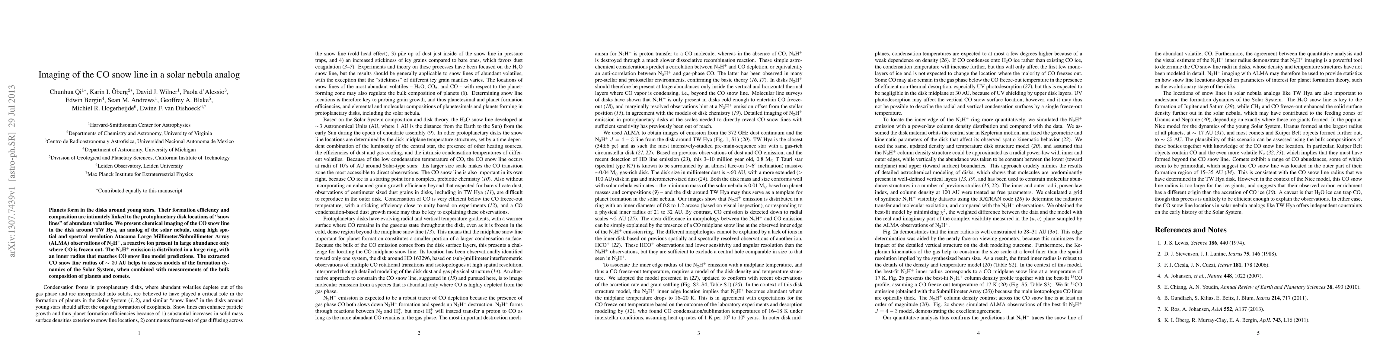 This study uses ALMA to chemically image the CO snow line in the TW Hya disk, finding a ring of N2H+ emission that aligns with CO snow line predictions at ~30 AU, aiding in assessing Solar System formation models.