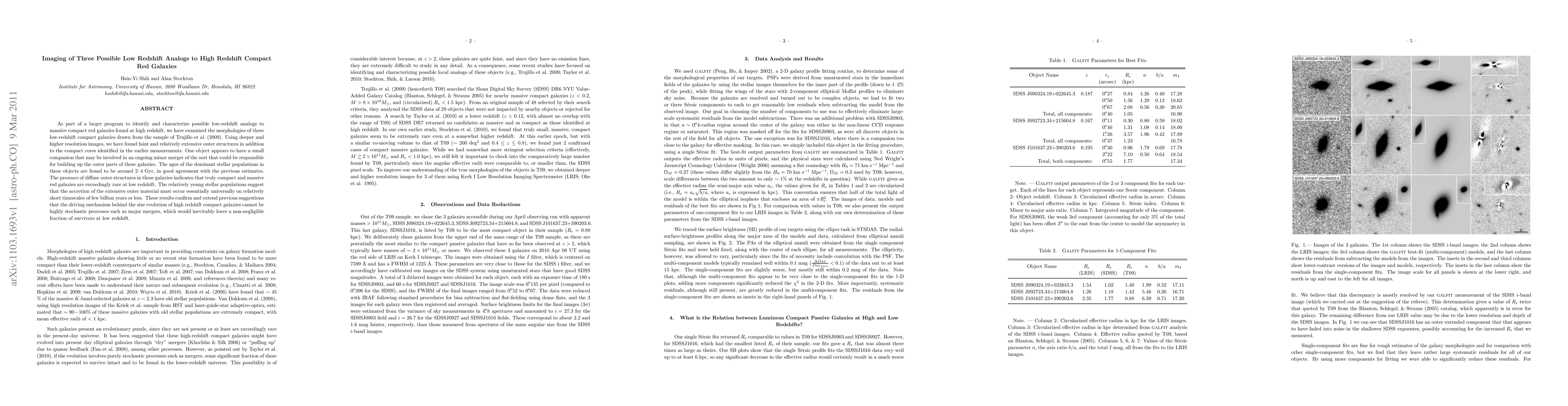 This paper identifies and characterizes low-redshift analogs to high-redshift compact red galaxies, revealing faint outer structures in these galaxies and suggesting that truly compact massive red galaxies are rare at low redshift. The study indicates that the accretion of outer material occurs on short timescales, implying that size evolution in high redshift galaxies is not driven by major mergers.