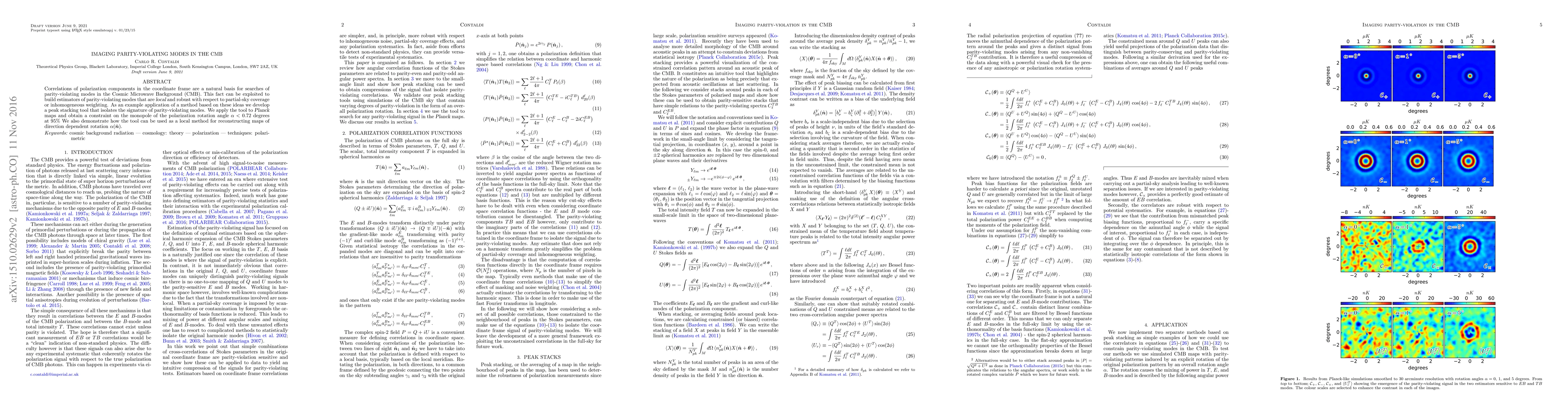 Correlations of polarization components in the coordinate frame are a natural basis for searches of parity-violating modes in the Cosmic Microwave Background (CMB). This fact can be exploited to build estimators of parity-violating modes that are {\sl local} and robust with respect to partial-sky coverage or inhomogeneous weighting. As an example application of a method based on these ideas we develop a peak stacking tool that isolates the signature of parity-violating modes. We apply the tool to {\sl Planck} maps and obtain a constraint on the monopole of the polarization rotation angle $\alpha < 0.72$ degrees at $95\%$ We also demonstrate how the tool can be used as a local method for reconstructing maps of direction dependent rotation $\alpha(\hat {n})$.