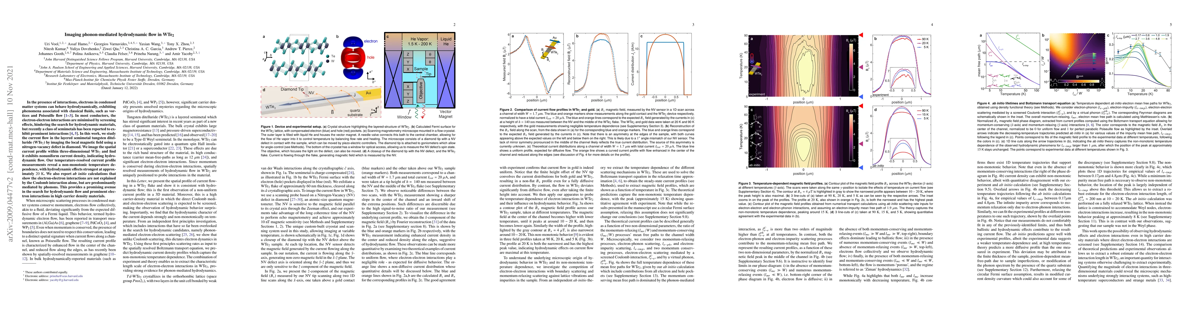 This paper investigates hydrodynamic flow in tungsten ditelluride (WTe2) using a nitrogen-vacancy defect in a diamond to image current profiles, revealing non-uniform current density indicative of hydrodynamic behavior. The study finds the strongest hydrodynamic effects at around 20 K and suggests phonon-mediated electron-electron interactions, not just Coulomb interactions, as the primary mechanism.
