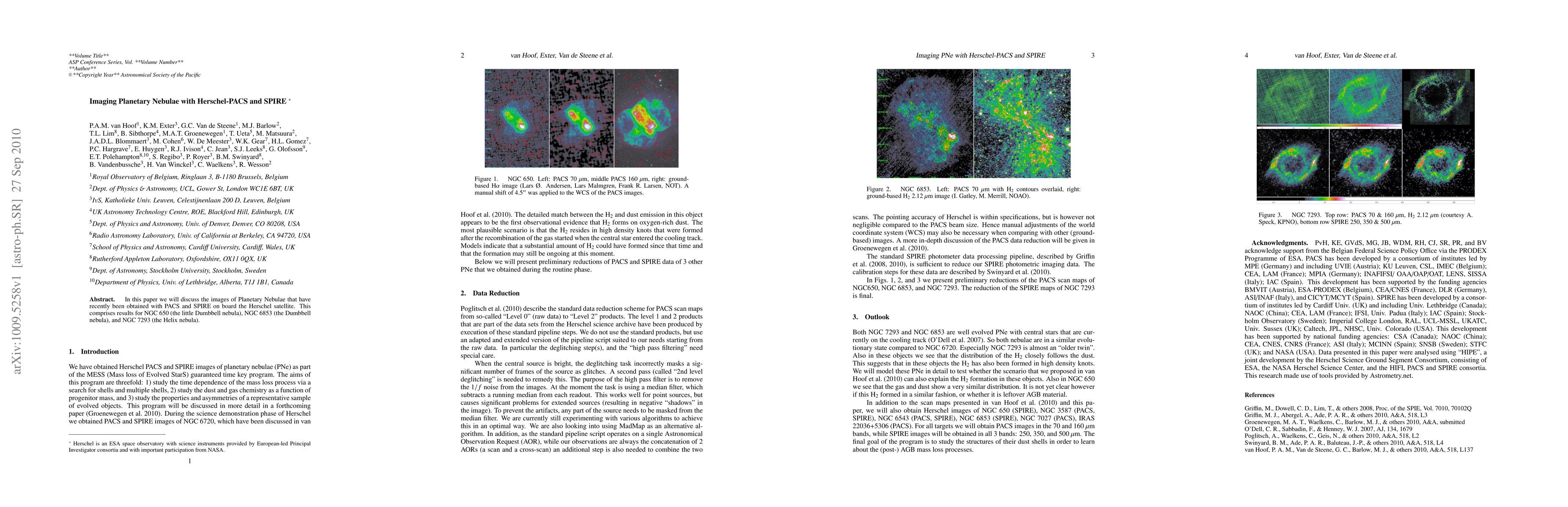 In this paper we will discuss the images of Planetary Nebulae that have recently been obtained with PACS and SPIRE on board the Herschel satellite. This comprises results for NGC 650 (the little Dumbbell nebula), NGC 6853 (the Dumbbell nebula), and NGC 7293 (the Helix nebula).