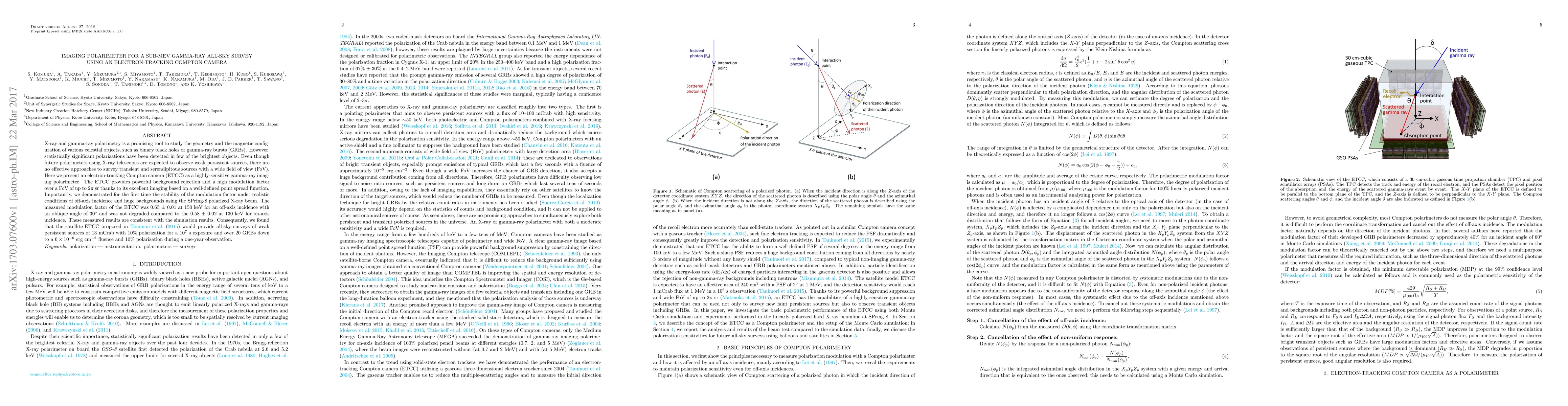 X-ray and gamma-ray polarimetry is a promising tool to study the geometry and the magnetic configuration of various celestial objects, such as binary black holes or gamma-ray bursts (GRBs). However, statistically significant polarizations have been detected in few of the brightest objects. Even though future polarimeters using X-ray telescopes are expected to observe weak persistent sources, there are no effective approaches to survey transient and serendipitous sources with a wide field of view (FoV). Here we present an electron-tracking Compton camera (ETCC) as a highly-sensitive gamma-ray imaging polarimeter. The ETCC provides powerful background rejection and a high modulation factor over a FoV of up to 2$\pi$ sr thanks to its excellent imaging based on a well-defined point spread function. Importantly, we demonstrated for the first time the stability of the modulation factor under realistic conditions of off-axis incidence and huge backgrounds using the SPring-8 polarized X-ray beam. The measured modulation factor of the ETCC was 0.65 $\pm$ 0.01 at 150 keV for an off-axis incidence with an oblique angle of 30$^\circ$ and was not degraded compared to the 0.58 $\pm$ 0.02 at 130 keV for on-axis incidence. These measured results are consistent with the simulation results. Consequently, we found that the satellite-ETCC proposed in Tanimori et al. (2015) would provide all-sky surveys of weak persistent sources of 13 mCrab with 10% polarization for a 10$^{7}$ s exposure and over 20 GRBs down to a $6\times10^{-6}$ erg cm$^{-2}$ fluence and 10% polarization during a one-year observation.