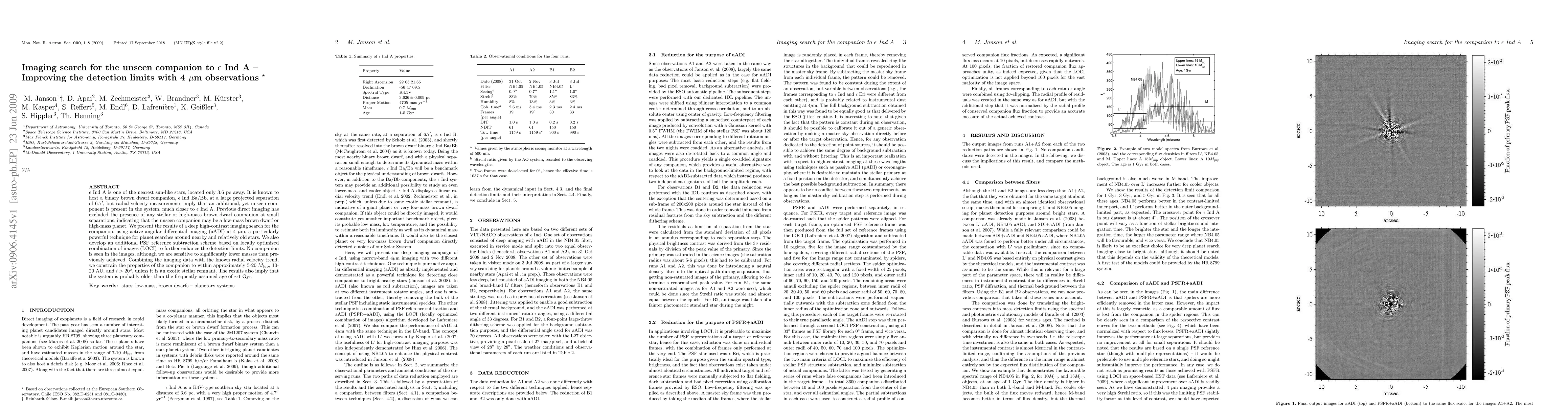 The research presents a deep imaging search for an unseen companion near Eps Ind A, a sun-like star, using 4 micron observations and advanced techniques. Despite sensitivity to lower masses, no companion was found, constraining its properties to roughly 5-20 Mjup, 10-20 AU, and inclination >20 degrees, suggesting the system might be older than 1 Gyr.