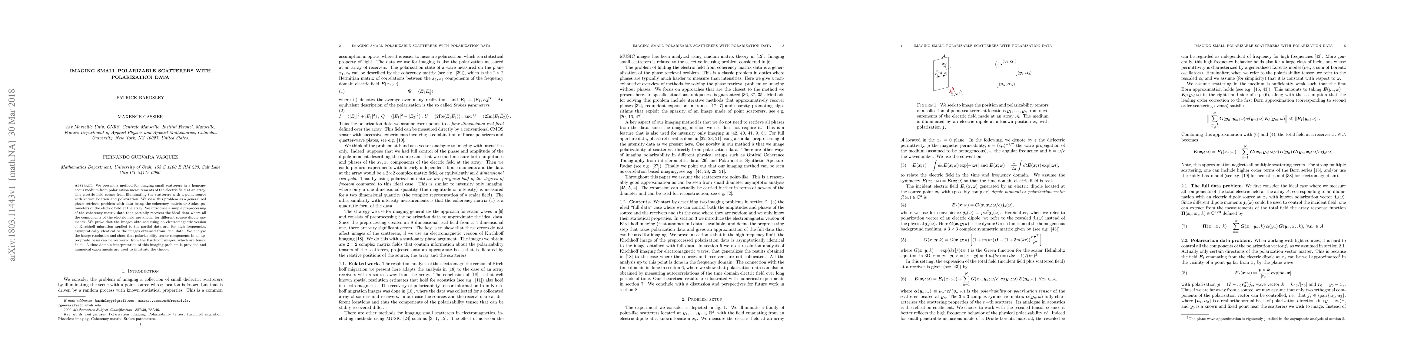 Researchers develop a method to image small polarizable scatterers using polarization measurements of an electromagnetic array, and show that the resulting images can accurately recover tensor fields representing the scatterers' properties.
