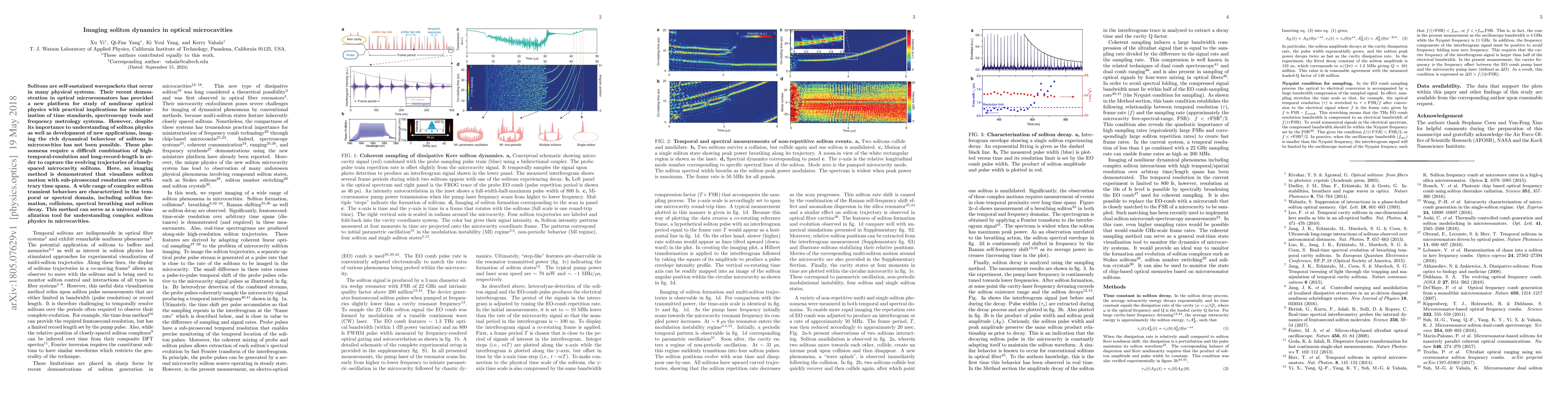 This paper presents an imaging technique that visualizes soliton dynamics in optical microcavities with sub-picosecond resolution over extended time periods, enabling the study of complex soliton behaviors such as formation, collisions, and decay. This method provides a universal tool for understanding soliton physics in microcavities.
