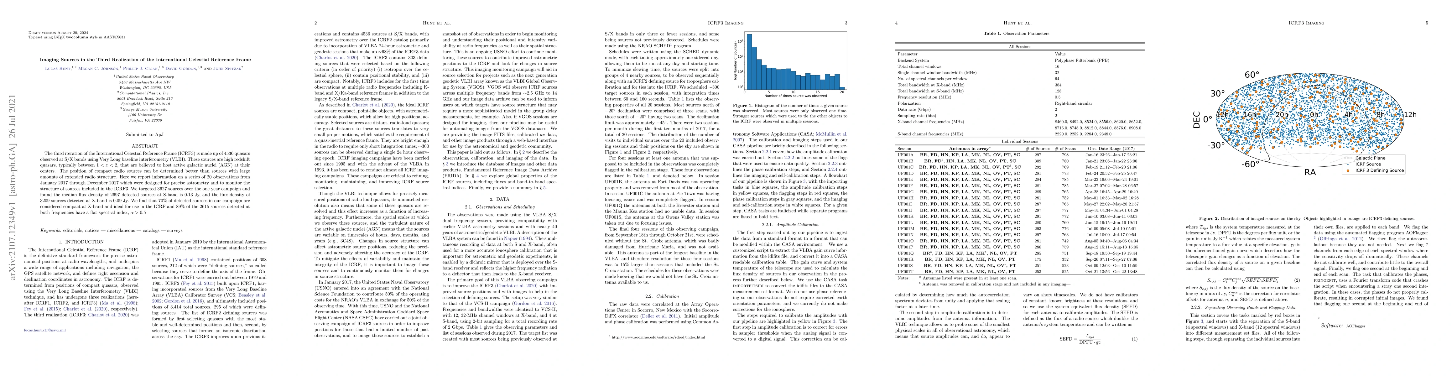 The ICRF3, comprising 4536 quasars observed via VLBI, includes high redshift quasars ideal for precise astrometry due to their compact radio sources. A year-long campaign detected 2697 sources at S-band with a median flux density of 0.13 Jy, and 3209 at X-band with 0.09 Jy, with 70% deemed compact and 89% exhibiting a flat spectral index.