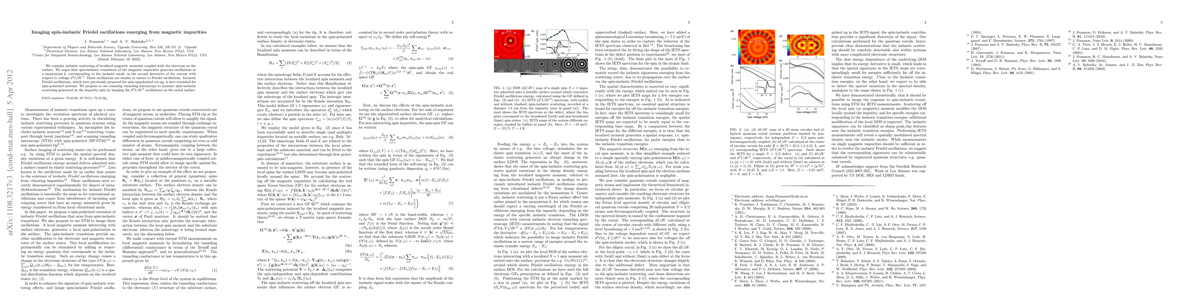 This paper explores the inelastic scattering of magnetic impurities coupled with surface electrons, proposing that spin-inelastic transitions generate oscillations in the second derivative of current with respect to voltage, akin to Friedel oscillations. The study extends this concept to spin-polarized systems and suggests using scanning tunneling microscopy to visualize these spin-inelastic Friedel oscillations.