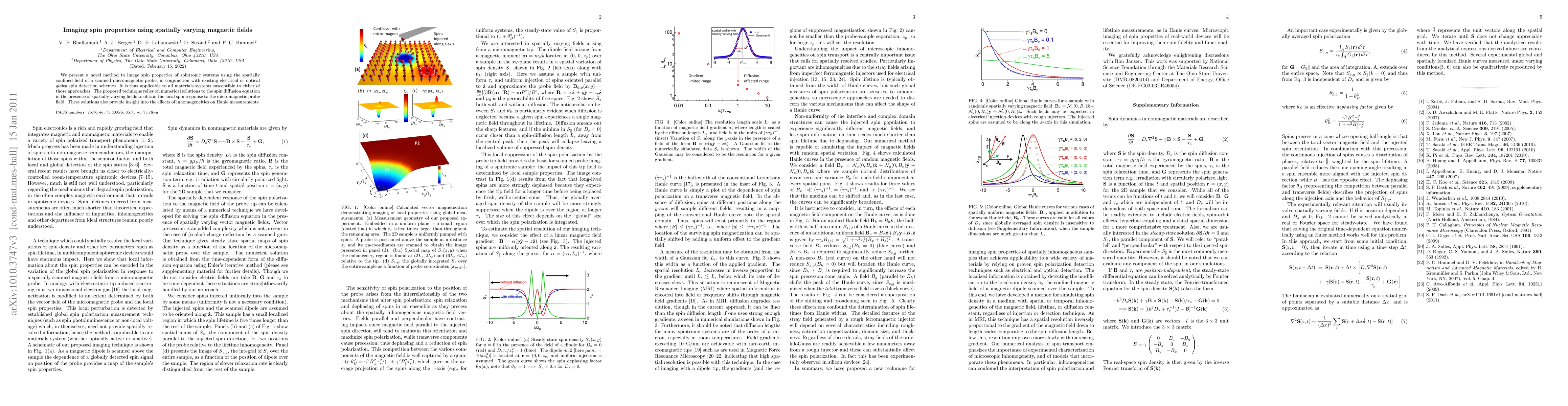 We present a novel method to image spin properties of spintronic systems using the spatially confined field of a scanned micromagnetic probe, in conjunction with existing electrical or optical global spin detection schemes. It is thus applicable to all materials systems susceptible to either of those approaches. The proposed technique relies on numerical solutions to the spin diffusion equation in the presence of spatially varying fields to obtain the local spin response to the micromagnetic probe field. These solutions also provide insight into the effects of inhomogeneities on Hanle measurements.