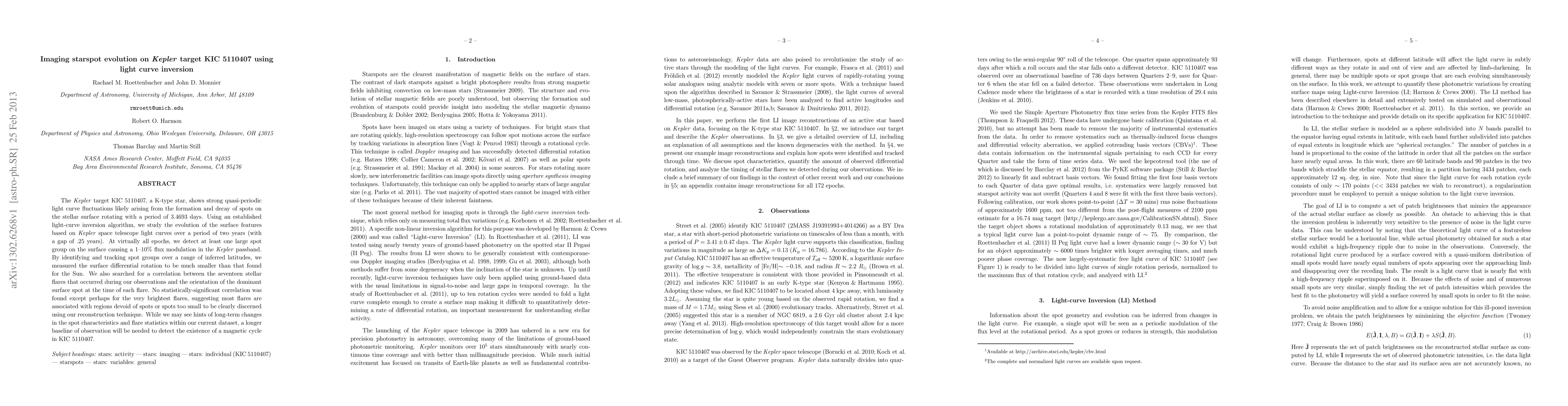 The Kepler target KIC 5110407, a K-type star, shows strong quasi-periodic light curve fluctuations likely arising from the formation and decay of spots on the stellar surface rotating with a period of 3.4693 days. Using an established light-curve inversion algorithm, we study the evolution of the surface features based on Kepler space telescope light curves over a period of two years (with a gap of .25 years). At virtually all epochs, we detect at least one large spot group on the surface causing a 1-10% flux modulation in the Kepler passband. By identifying and tracking spot groups over a range of inferred latitudes, we measured the surface differential rotation to be much smaller than that found for the Sun. We also searched for a correlation between the seventeen stellar flares that occurred during our observations and the orientation of the dominant surface spot at the time of each flare. No statistically-significant correlation was found except perhaps for the very brightest flares, suggesting most flares are associated with regions devoid of spots or spots too small to be clearly discerned using our reconstruction technique. While we may see hints of long-term changes in the spot characteristics and flare statistics within our current dataset, a longer baseline of observation will be needed to detect the existence of a magnetic cycle in KIC 5110407.