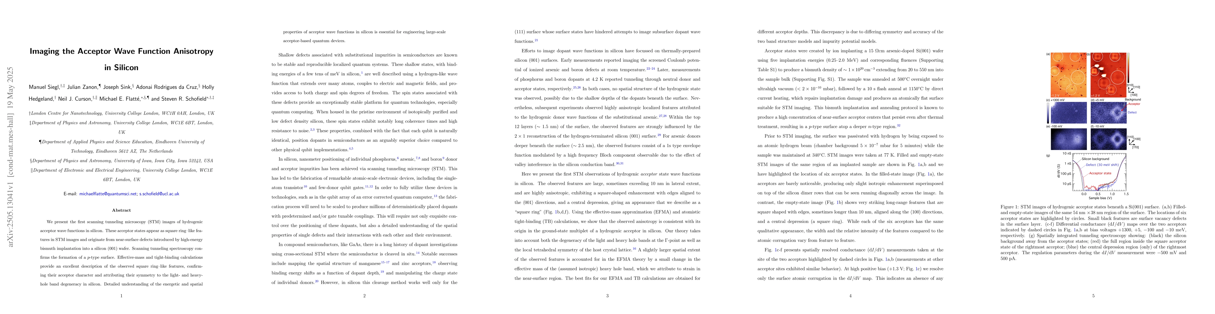 Researchers create first STM images of hydrogenic acceptor wave functions in silicon, revealing square ring-like features near surface defects. These findings provide insight into the energetic and spatial properties of acceptors for engineering large-scale quantum devices.