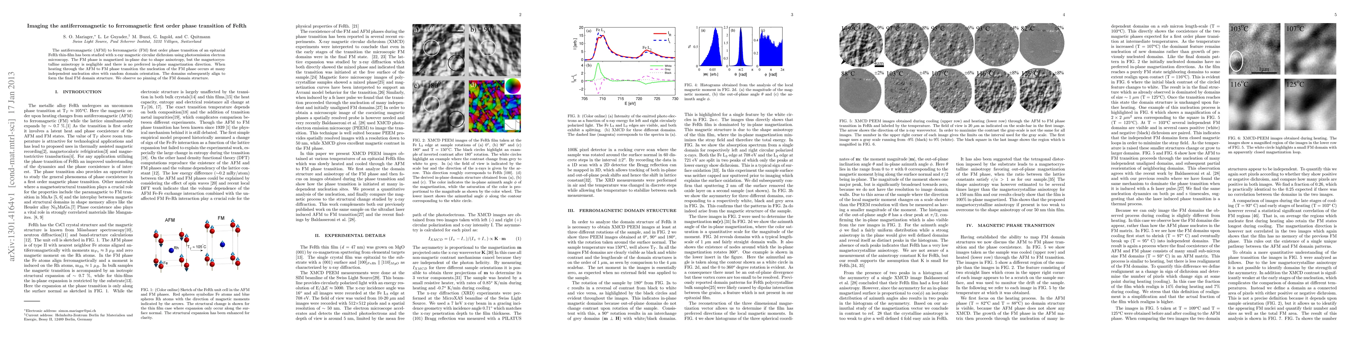 Researchers studied the phase transition from antiferromagnetic to ferromagnetic in FeRh thin films using x-ray magnetic circular dichroism, finding that FM domains align randomly before settling into a final structure with no pinning.