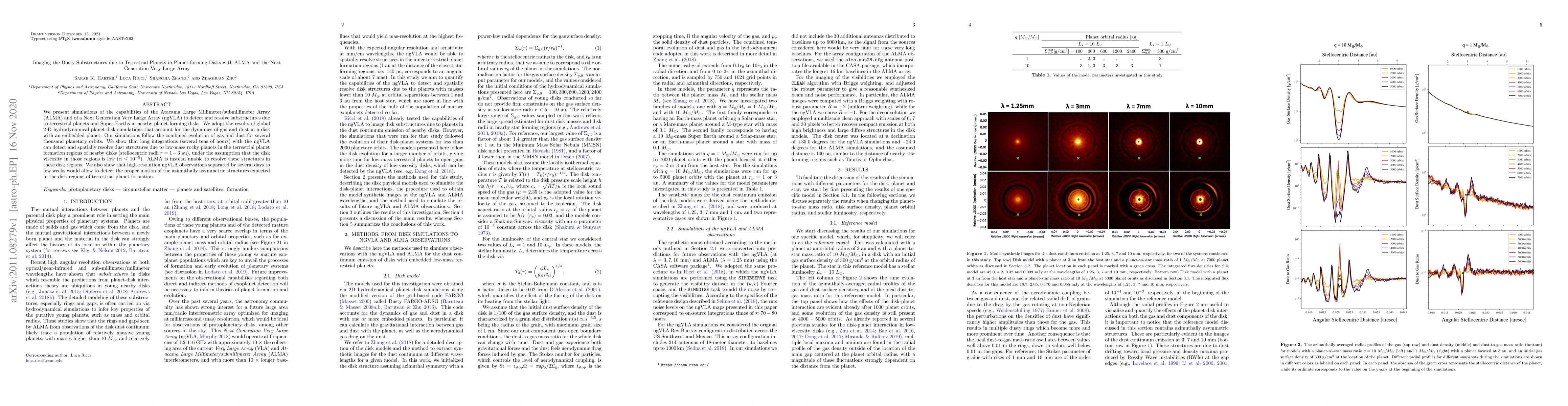 We present simulations of the capabilities of the Atacama Large Millimeter/submillimeter Array (ALMA) and of a Next Generation Very Large Array (ngVLA) to detect and resolve substructures due to terrestrial planets and Super-Earths in nearby planet-forming disks. We adopt the results of global 2-D hydrodynamical planet-disk simulations that account for the dynamics of gas and dust in a disk with an embedded planet. Our simulations follow the combined evolution of gas and dust for several thousand planetary orbits. We show that long integrations (several tens of hours) with the ngVLA can detect and spatially resolve dust structures due to low-mass rocky planets in the terrestrial planet formation regions of nearby disks (stellocentric radii $r = 1 - 3$ au), under the assumption that the disk viscosity in those regions is low ($\alpha \le 10^{-5}$). ALMA is instead unable to resolve these structures in these disk regions. We also show that high-resolution ngVLA observations separated by several days to few weeks would allow to detect the proper motion of the azimuthally asymmetric structures expected in the disk regions of terrestrial planet formation.
