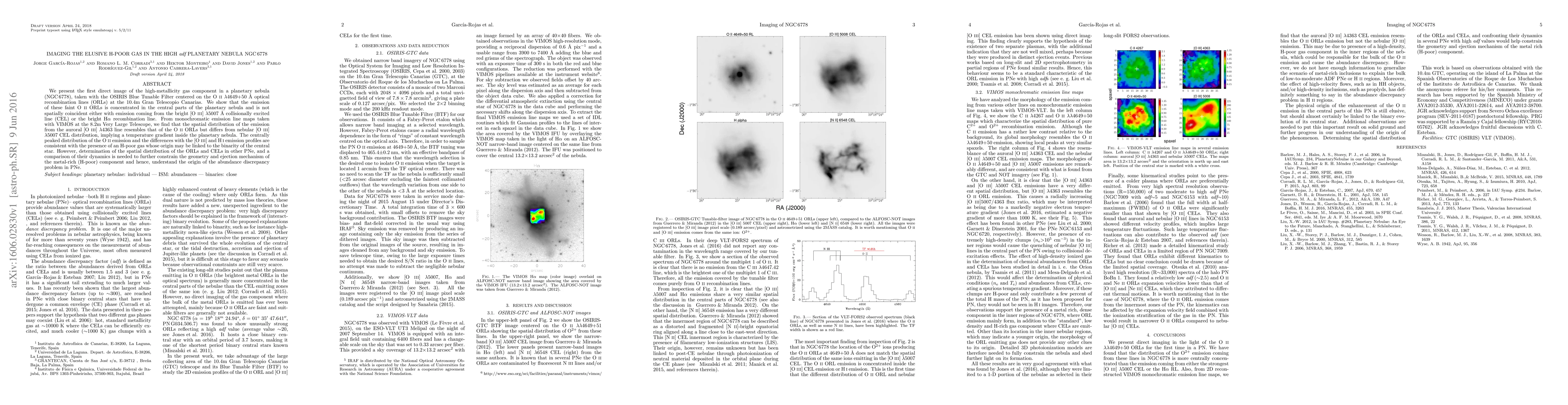 This study presents the first direct image of high-metallicity, H-poor gas in the planetary nebula NGC 6778 using the OSIRIS Blue Tunable Filter, revealing a centrally concentrated emission of O II ORLs distinct from H I and [O III] emissions. The findings suggest an H-poor gas origin possibly linked to the central star's binarity, but further comparative studies are needed to understand the broader ejection mechanisms and abundance discrepancies in planetary nebulae.