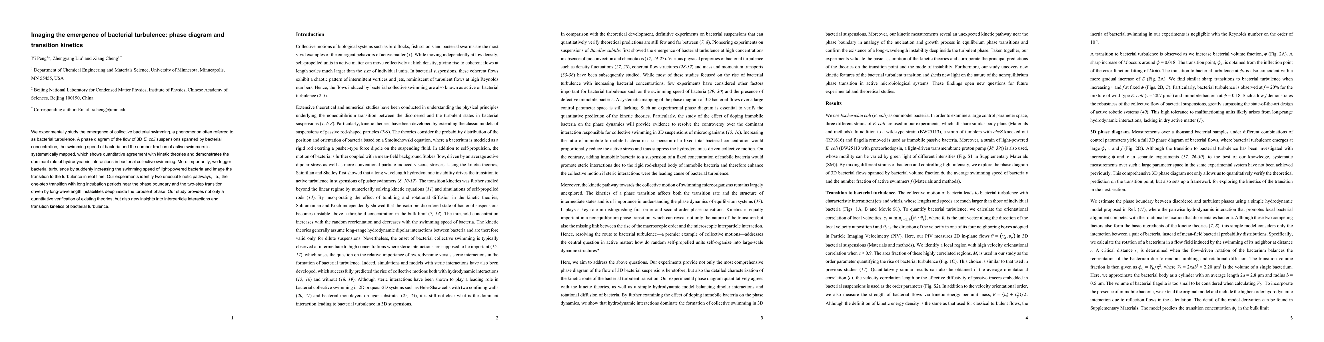 This work extends existing research by not only validating kinetic theories but also uncovering new features of bacterial turbulent transition, including the identification of two distinct kinetic pathways and the dominant role of hydrodynamic interactions in collective swimming.