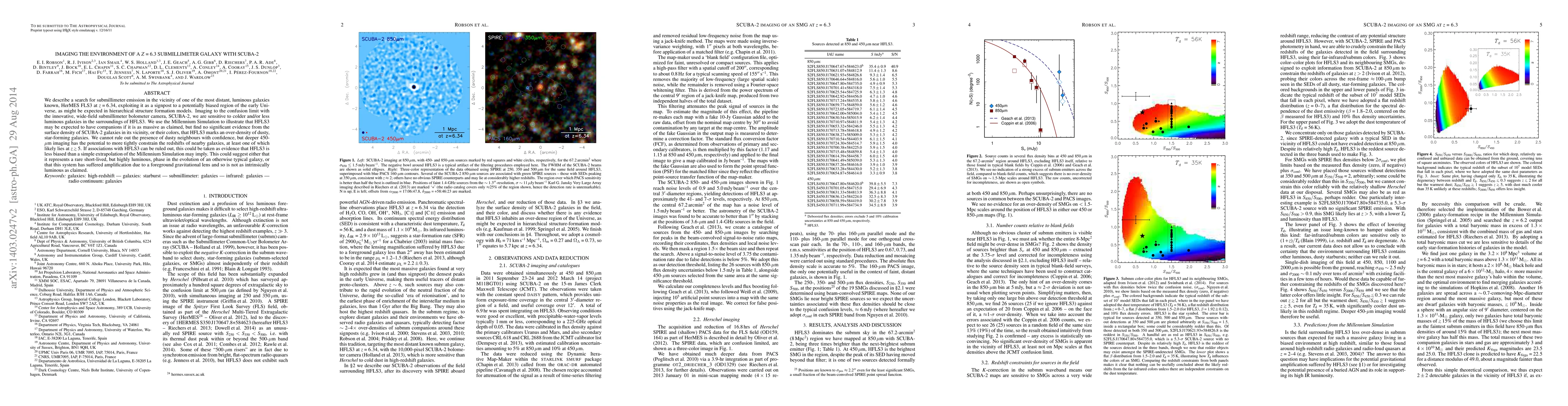 We describe a search for submillimeter emission in the vicinity of one of the most distant, luminous galaxies known, HerMES FLS3 at z=6.34, exploiting it as a signpost to a potentially biased region of the early Universe, as might be expected in hierarchical structure formation models. Imaging to the confusion limit with the innovative, wide-field submillimeter bolometer camera, SCUBA-2, we are sensitive to colder and/or less luminous galaxies in the surroundings of HFLS3. We use the Millennium Simulation to illustrate that HFLS3 may be expected to have companions if it is as massive as claimed, but find no significant evidence from the surface density of SCUBA-2 galaxies in its vicinity, or their colors, that HFLS3 marks an over-density of dusty, star-forming galaxies. We cannot rule out the presence of dusty neighbours with confidence, but deeper 450-um imaging has the potential to more tightly constrain the redshifts of nearby galaxies, at least one of which likely lies at z>~5. If associations with HFLS3 can be ruled out, this could be taken as evidence that HFLS3 is less biased than a simple extrapolation of the Millennium Simulation may imply. This could suggest either that it represents a rare short-lived, but highly luminous, phase in the evolution of an otherwise typical galaxy, or that this system has suffered amplification due to a foreground gravitational lens and so is not as intrinsically luminous as claimed.