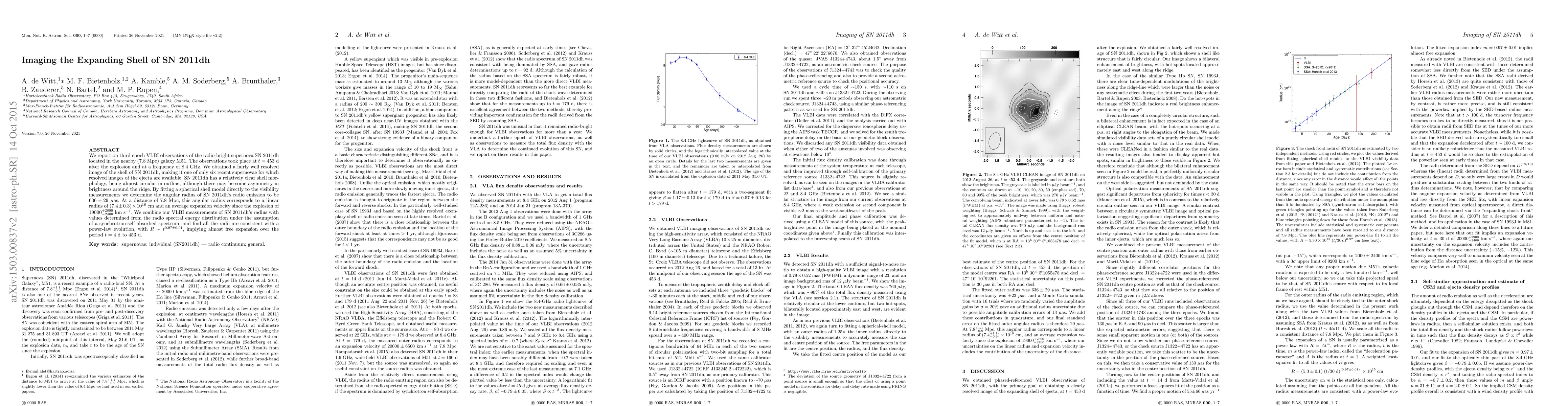We report on third epoch VLBI observations of the radio-bright supernova SN 2011dh located in the nearby (7.8 Mpc) galaxy M51. The observations took place at $t=453$ d after the explosion and at a frequency of 8.4 GHz. We obtained a fairly well resolved image of the shell of SN 2011dh, making it one of only six recent supernovae for which resolved images of the ejecta are available. SN 2011dh has a relatively clear shell morphology, being almost circular in outline, although there may be some asymmetry in brightness around the ridge. By fitting a spherical shell model directly to the visibility measurements we determine the angular radius of SN 2011dh's radio emission to be $636 \pm 29$ $\mu$as. At a distance of 7.8 Mpc, this angular radius corresponds to a linear radius of $(7.4 \pm 0.3) \times 10^{16}$ cm and an average expansion velocity since the explosion of $19000^{+2800}_{-2400}$ kms$^{-1}$. We combine our VLBI measurements of SN 2011dh's radius with values determined from the radio spectral energy distribution under the assumption of a synchrotron-self-absorbed spectrum, and find all the radii are consistent with a power-law evolution, with $R \sim t^{0.97\pm0.01}$, implying almost free expansion over the period $t=4$ d to 453 d.