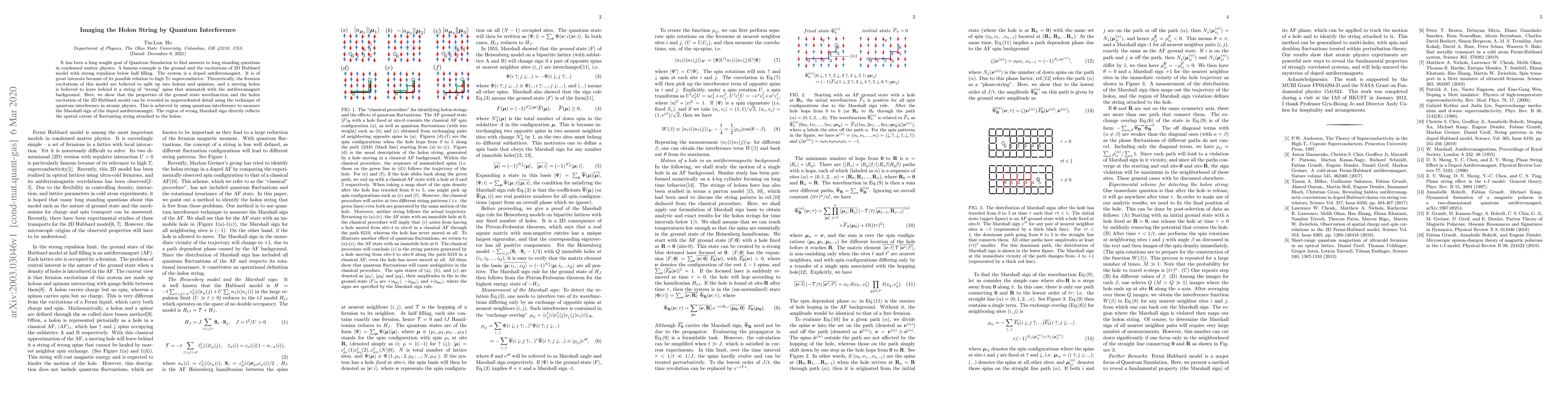 It has been a long sought goal of Quantum Simulation to find answers to long standing questions in condensed matter physics. A famous example is the ground and the excitations of 2D Hubbard model with strong repulsion below half filling. The system is a doped antiferromagnet. It is of great interests because of its possible relation to high Tc superconductor. Theoretically, the fermion excitations of this model are believed to split up into holons and spinions, and a moving holon is believed to leave behind it a string of "wrong" spins that mismatch with the antiferromagnet background. Here, we show that the properties of the ground state wavefunction and the holon excitation of the 2D Hubbard model can be revealed in unprecedented detail using the technique of quantum interference in atomic physics. This is achieved by using quantum interference to measure the Marshall sign of the doped antiferromanget. The region of wrong Marshall sign directly reflects the spatial extent of fluctuating string attached to the holon.