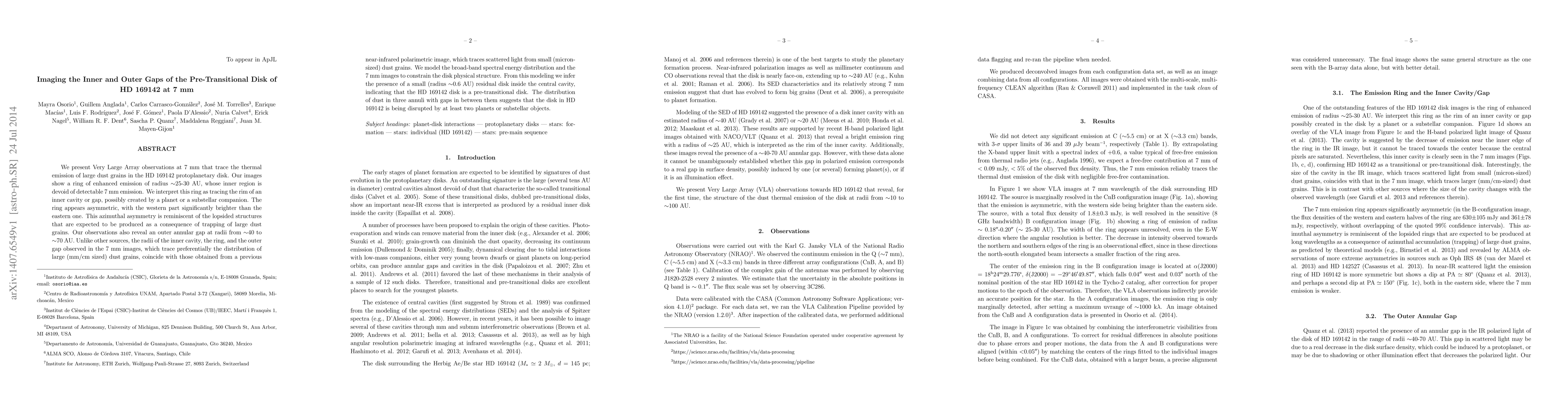 This study uses Very Large Array observations at 7 mm to image the HD 169142 protoplanetary disk, revealing an inner cavity or gap possibly formed by a planet or substellar companion, and an outer annular gap. The findings suggest the disk is disrupted by at least two such objects.