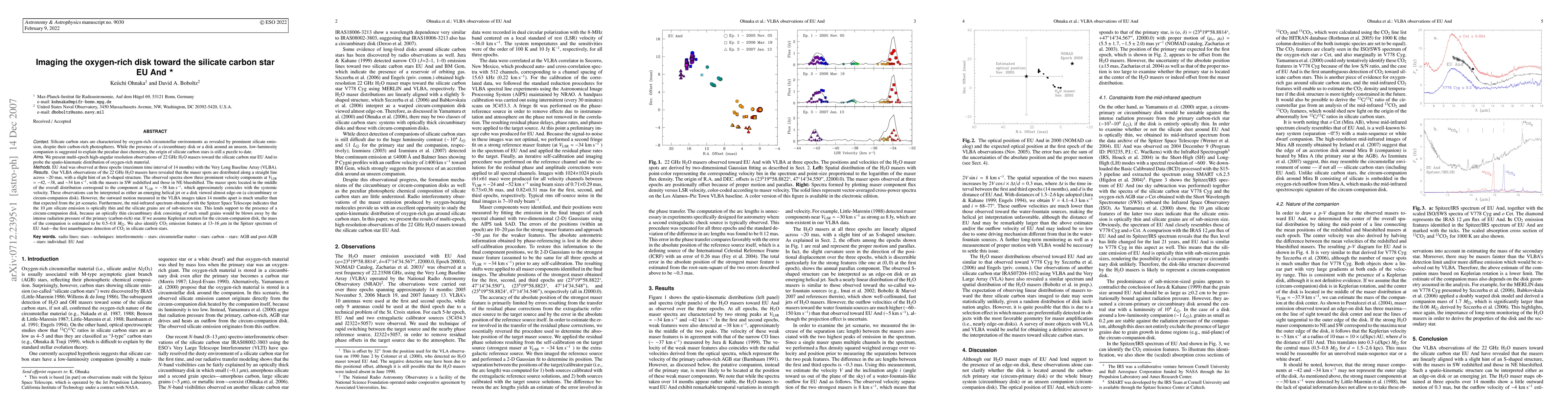 This study uses VLBA observations of H2O masers to investigate the oxygen-rich material around the silicate carbon star EU And, revealing an S-shaped distribution of maser spots. The findings suggest a circum-companion disk rather than a jet, supported by the optically thin silicate emission and the detection of CO2, indicating a mass for the companion of 0.5--0.8 M_sun.