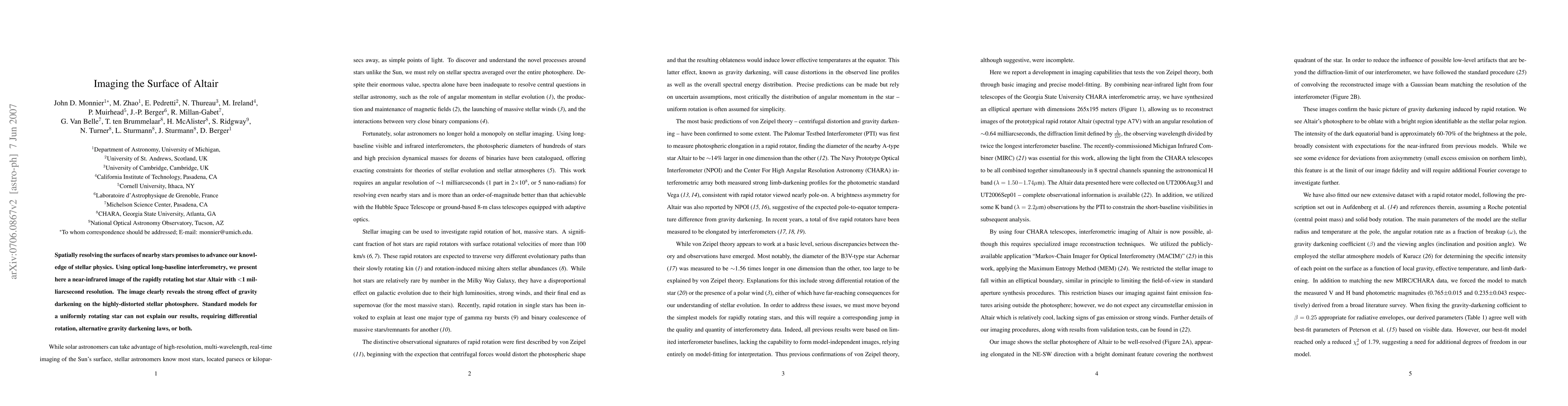 Spatially resolving the surfaces of nearby stars promises to advance our knowledge of stellar physics. Using optical long-baseline interferometry, we present here a near-infrared image of the rapidly rotating hot star Altair with <1 milliarcsecond resolution. The image clearly reveals the strong effect of gravity darkening on the highly-distorted stellar photosphere. Standard models for a uniformly rotating star can not explain our results, requiring differential rotation, alternative gravity darkening laws, or both.