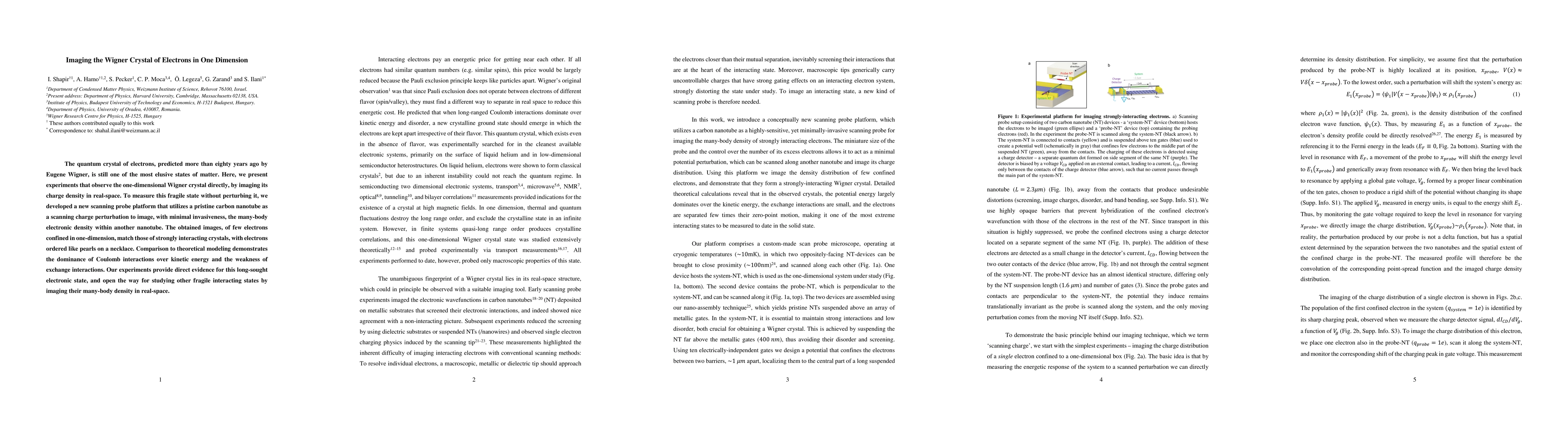 This research observes the elusive Wigner crystal of electrons in one dimension by imaging its charge density using a novel scanning probe platform with a carbon nanotube. The results show electron ordering akin to a strongly interacting crystal, confirming the dominance of Coulomb interactions and providing direct evidence of this long-sought state of matter.