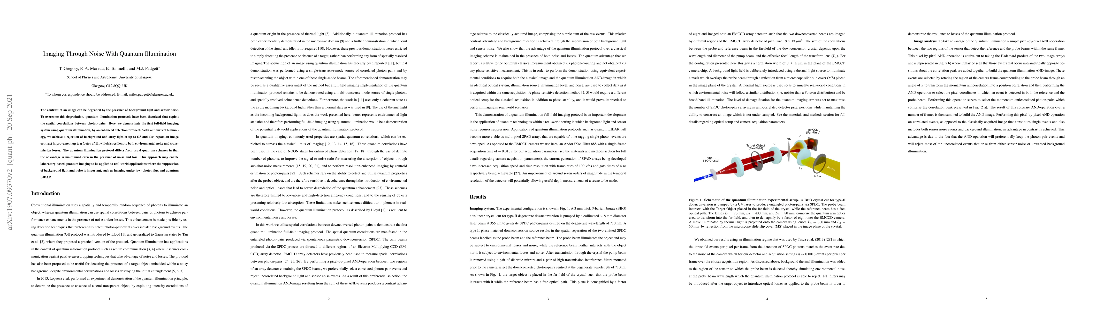 The contrast of an image can be degraded by the presence of background light and sensor noise. To overcome this degradation, quantum illumination protocols have been theorised (Science 321 (2008), Physics Review Letters 101 (2008)) that exploit the spatial correlations between photon-pairs. Here we demonstrate the first full-field imaging system using quantum illumination, by an enhanced detection protocol. With our current technology we achieve a rejection of background and stray light of order 5 and also report an image contrast improvement up to a factor of 5.5, which is resilient to both environmental noise and transmission losses. The quantum illumination protocol differs from usual quantum schemes in that the advantage is maintained even in the presence of noise and loss. Our approach may enable laboratory-based quantum imaging to be applied to real-world applications where the suppression of background light and noise is important, such as imaging under low-photon flux and quantum LIDAR.
