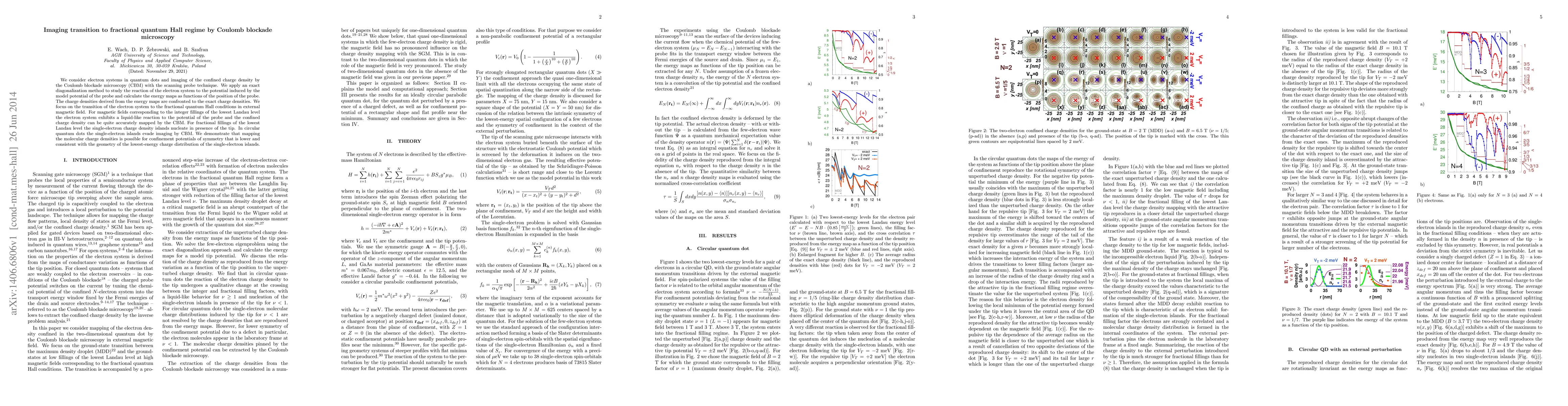 This research investigates electron systems in quantum dots using Coulomb blockade microscopy to image the transition to fractional quantum Hall regime under varying magnetic fields. The study reveals that while integer fillings allow accurate charge density mapping, fractional fillings result in single-electron islands that evade direct imaging, suggesting a need for lower-symmetry confinement potentials for effective mapping.