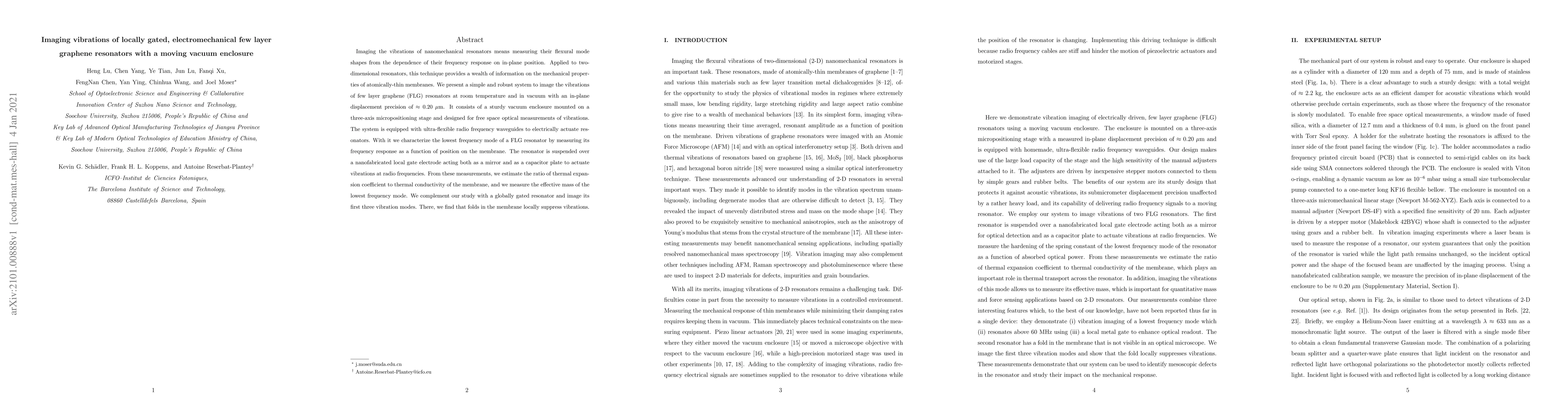 The paper introduces a novel system combining a vacuum enclosure with a micropositioning stage and flexible RF waveguides for high-precision imaging and actuation of FLG resonators.