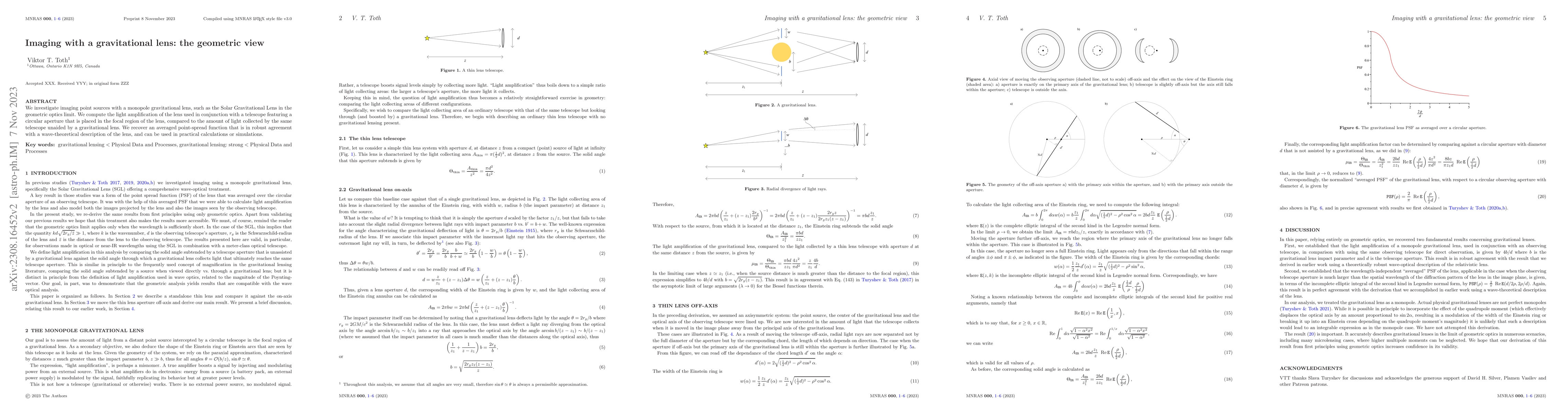 This paper explores the imaging capabilities of a monopole gravitational lens, like the Solar Gravitational Lens, in the geometric optics limit, finding significant light amplification when used with a telescope. It validates a practical averaged point-spread function consistent with wave-theoretical models for simulations.