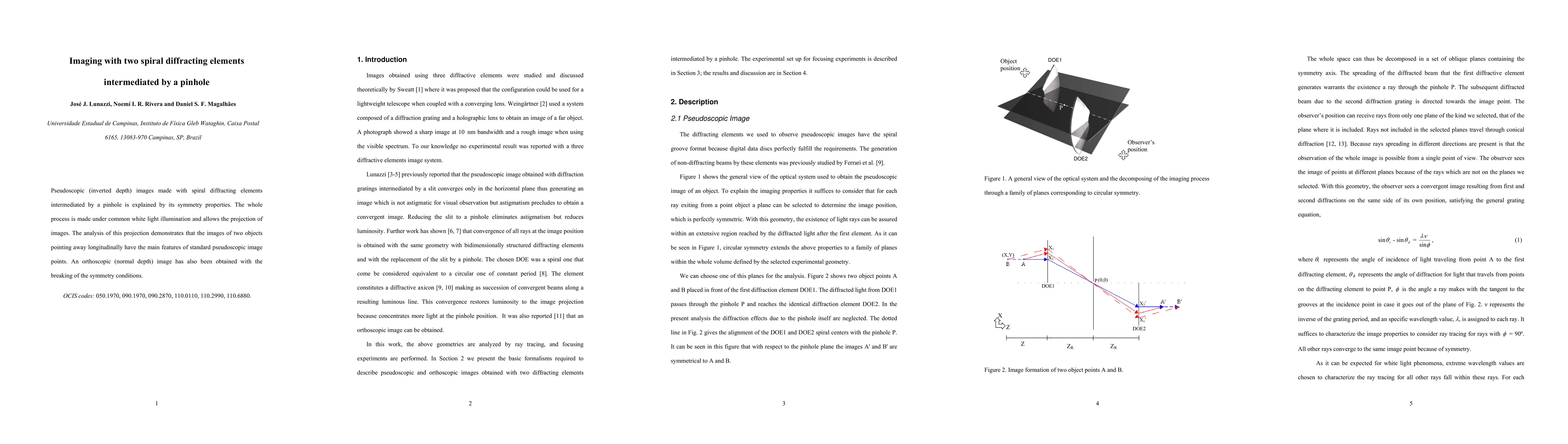 Researchers created an inverted depth image using spiral diffracting elements with a pinhole, demonstrating symmetry properties that project images of objects pointing away from the viewer. They also achieved an orthoscopic (normal depth) image by breaking the symmetry conditions.