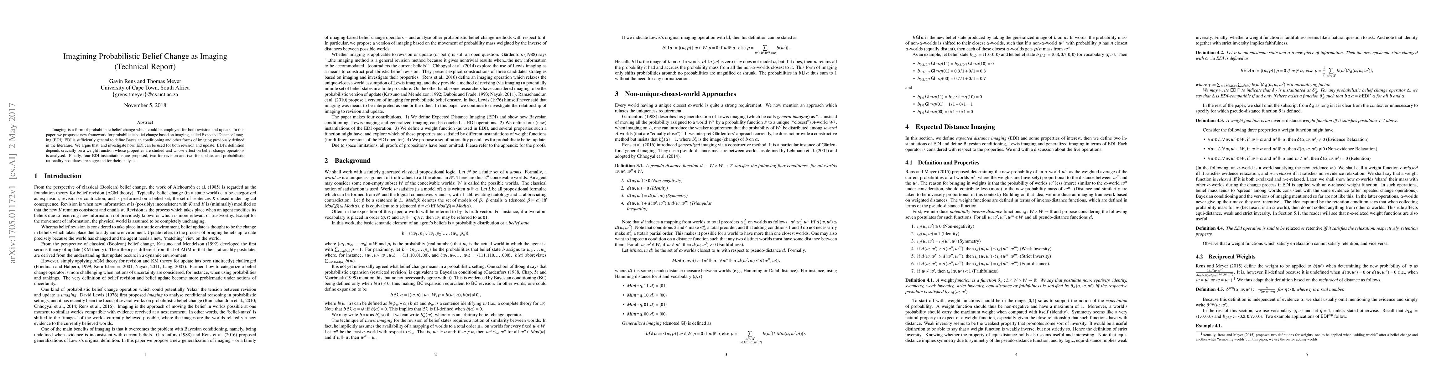 This paper introduces Expected Distance Imaging (EDI), a new framework for probabilistic belief change that encompasses both revision and update. EDI is shown to generalize Bayesian conditioning and other imaging methods, with a focus on analyzing the role of a weight function in belief change operations.
