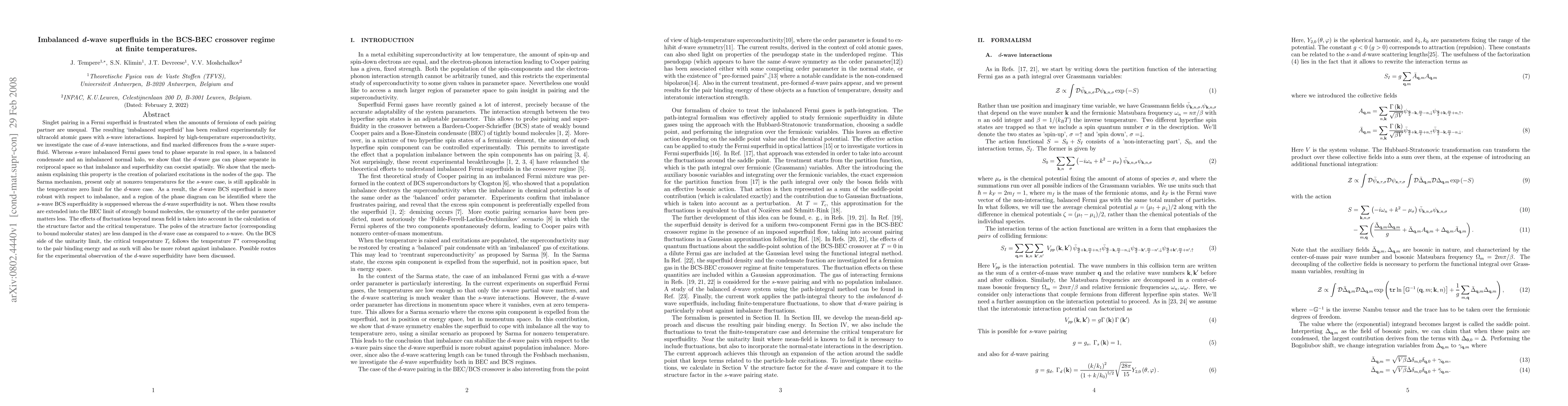 Researchers investigate d-wave superfluids in the BCS-BEC crossover regime at finite temperatures and find that they can phase separate in reciprocal space, unlike s-wave superfluids, due to polarized excitations in the nodes of the gap.