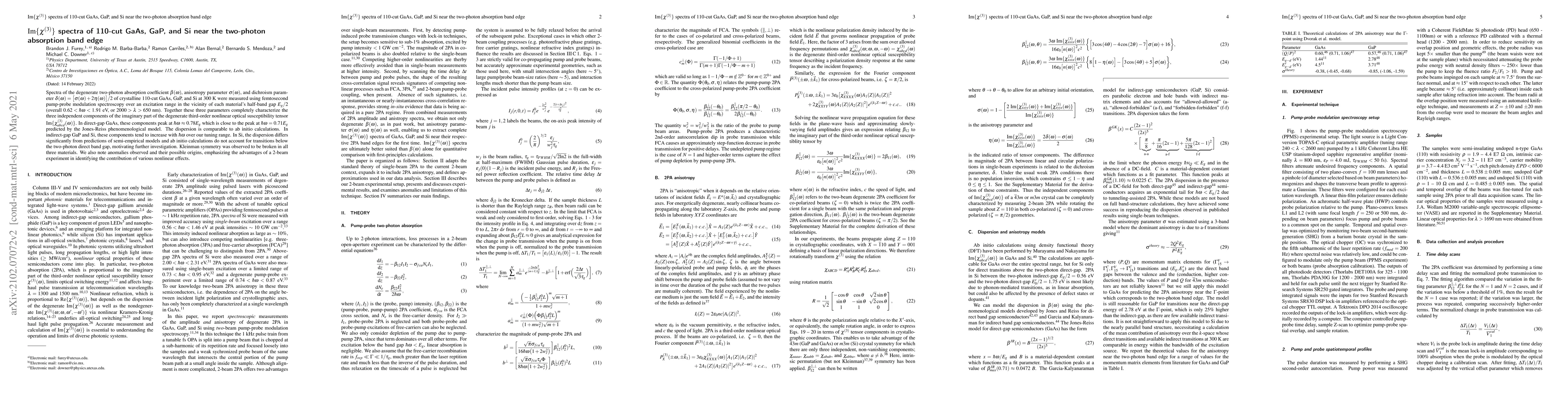 Researchers measured the two-photon absorption spectra of GaAs, GaP, and Si near their half-band gap, finding that direct-gap GaAs displays dispersion similar to ab initio calculations, while indirect-gap materials exhibit increasing dispersion with excitation energy.