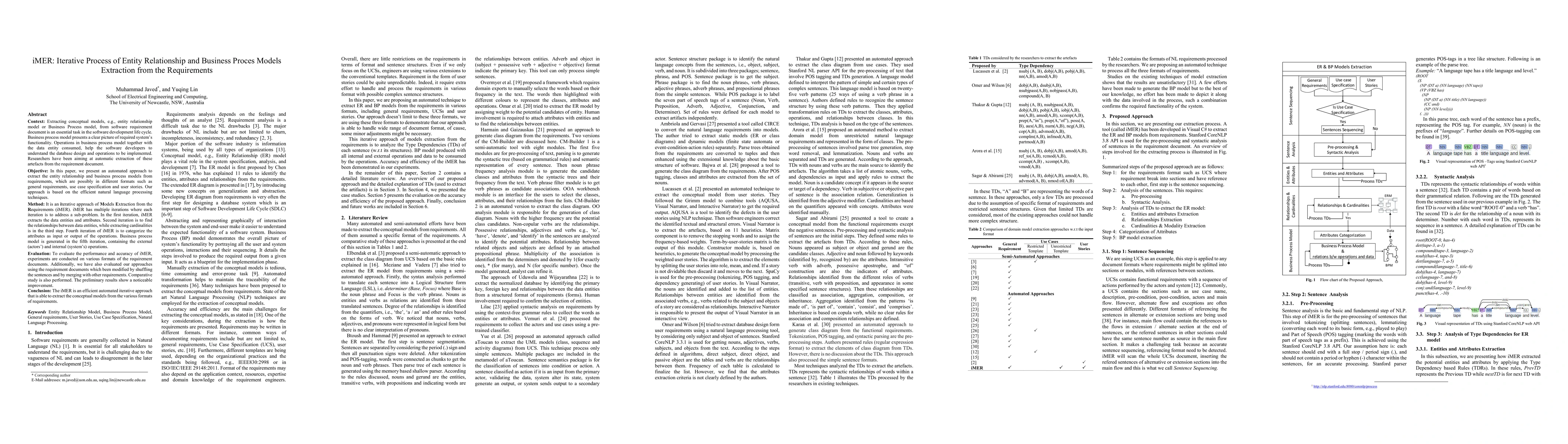 This paper introduces an automated method using natural language processing to extract entity relationship and business process models from various software requirement documents, aiding developers in understanding database design and system functionality. The proposed iterative approach aims to improve the accuracy and efficiency of model extraction from diverse formats like use cases and user stories.