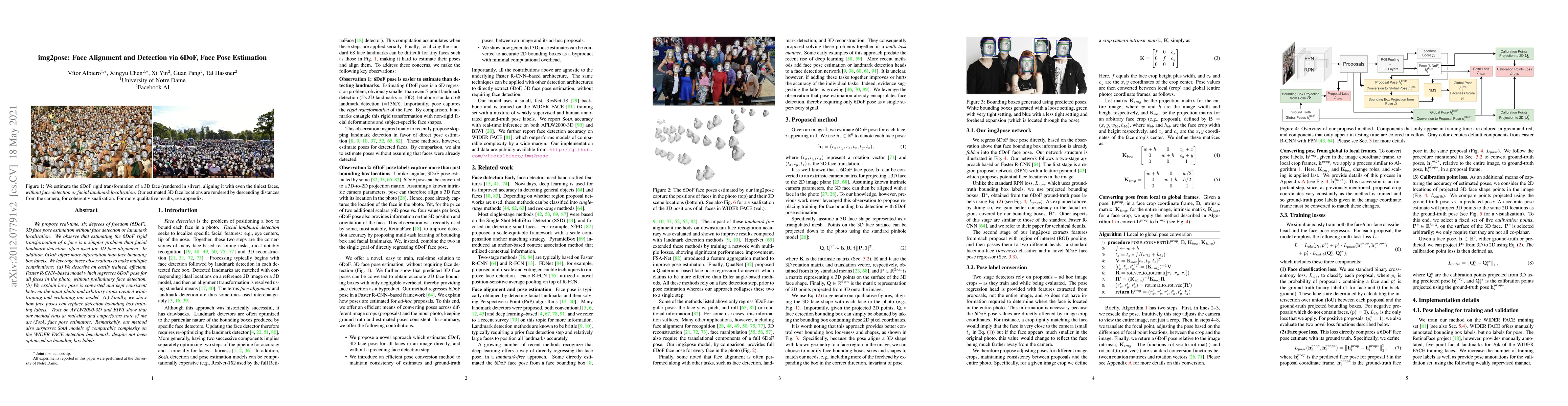 This paper proposes a real-time 6DoF 3D face pose estimation method that directly regresses pose without initial face detection or landmark localization, leveraging the simplicity of estimating rigid transformations over traditional landmark detection. The method uses a Faster R-CNN-based model and outperforms state-of-the-art models on face pose estimation and detection benchmarks.