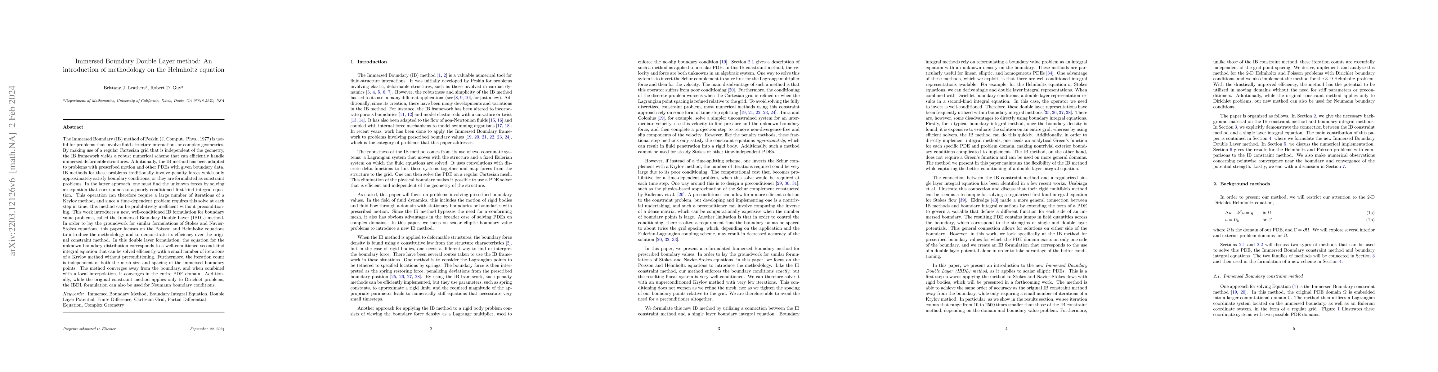 The Immersed Boundary Double Layer (IBDL) method introduces a new, efficient numerical scheme for solving the Helmholtz equation in fluid-structure interaction problems. Unlike traditional methods, IBDL solves a well-conditioned second-kind integral equation, requiring fewer iterations and independent of mesh size, thus offering significant computational efficiency.
