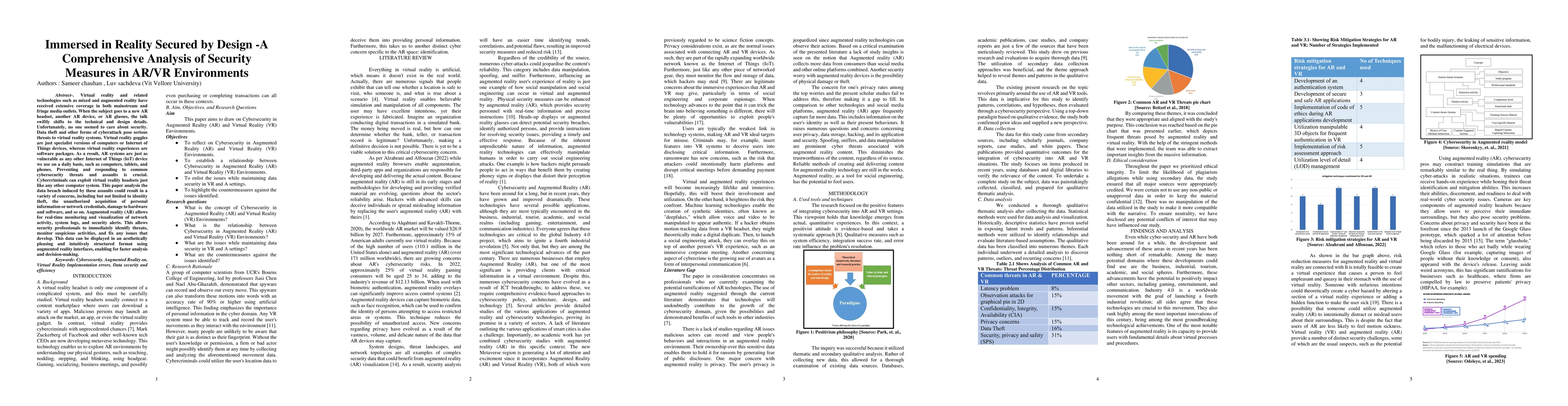 This paper examines the security measures in AR/VR environments, highlighting the vulnerabilities of AR systems akin to IoT devices. It emphasizes the importance of cybersecurity to prevent threats like data theft and identity theft, proposing augmented reality interfaces for real-time monitoring and quicker threat resolution.