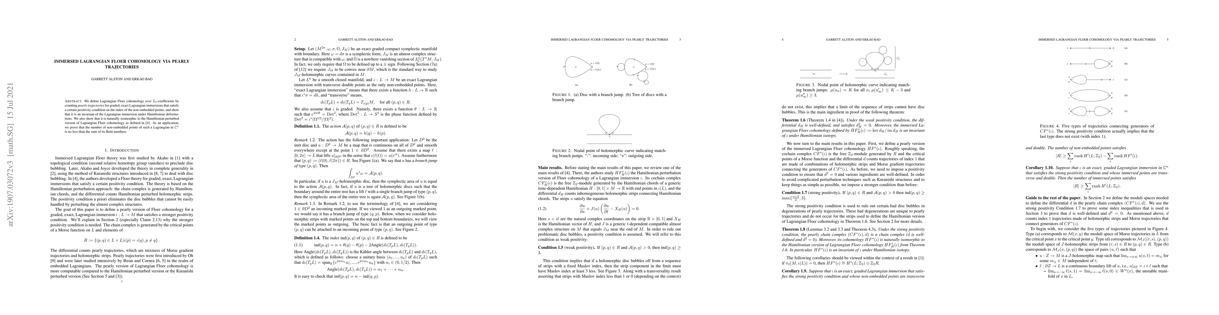 This paper introduces a new definition of Lagrangian Floer cohomology using pearly trajectories for exact Lagrangian immersions, proving it invariant under Hamiltonian deformations and isomorphic to a previously defined version. It also demonstrates that the number of non-embedded points in a Lagrangian in $\mathbb C^n$ is at least the sum of its Betti numbers.