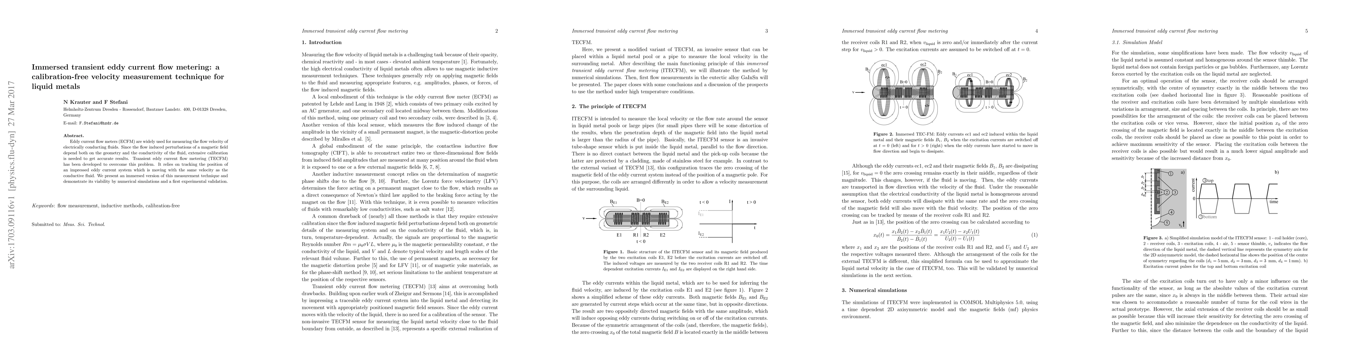 This paper introduces an immersed transient eddy current flow metering technique for measuring liquid metal velocity without the need for extensive calibration. The method tracks the position of a moving eddy current system, validated through numerical simulations and initial experiments.